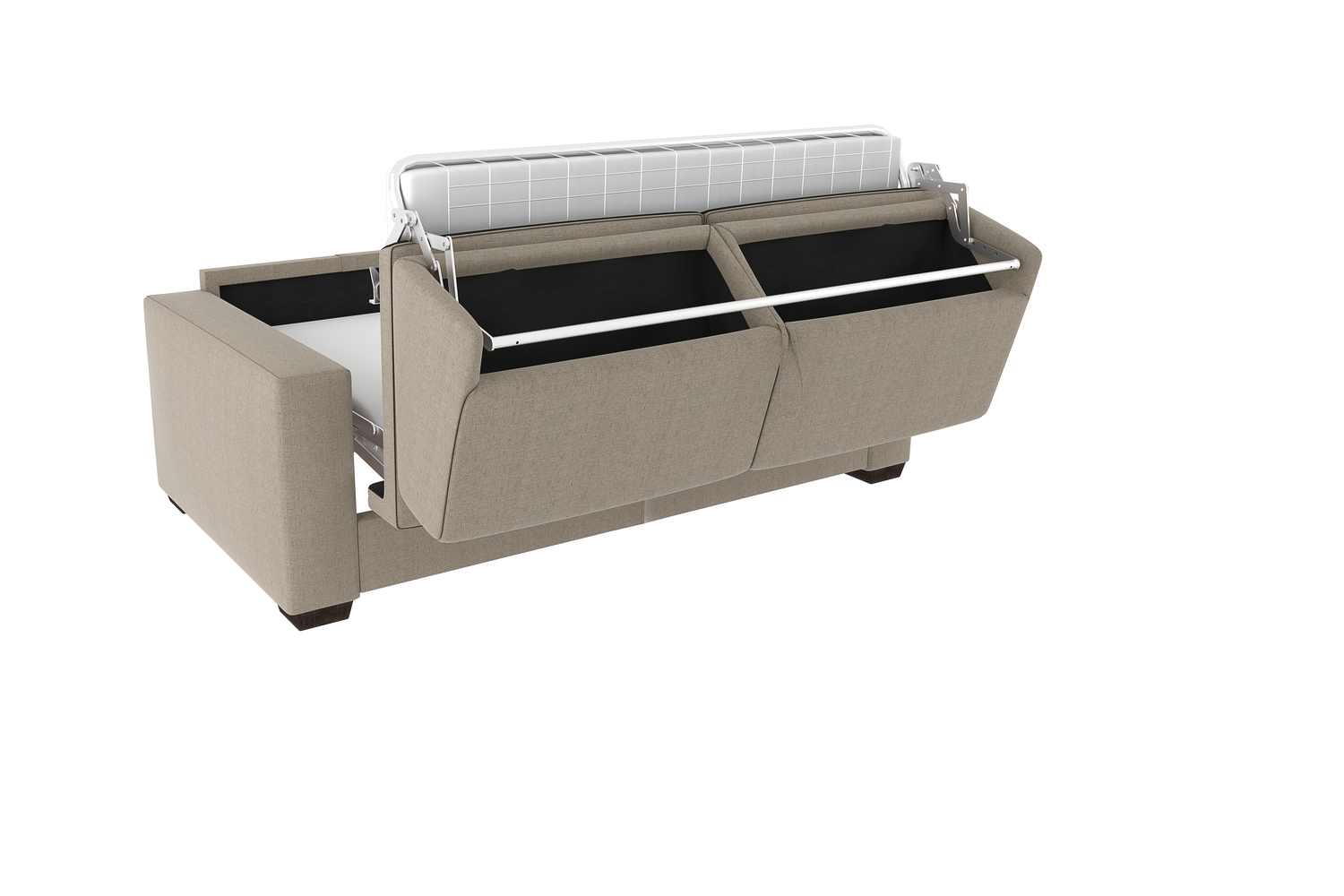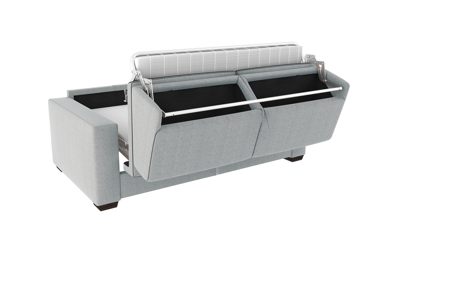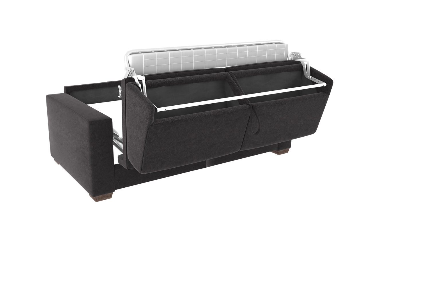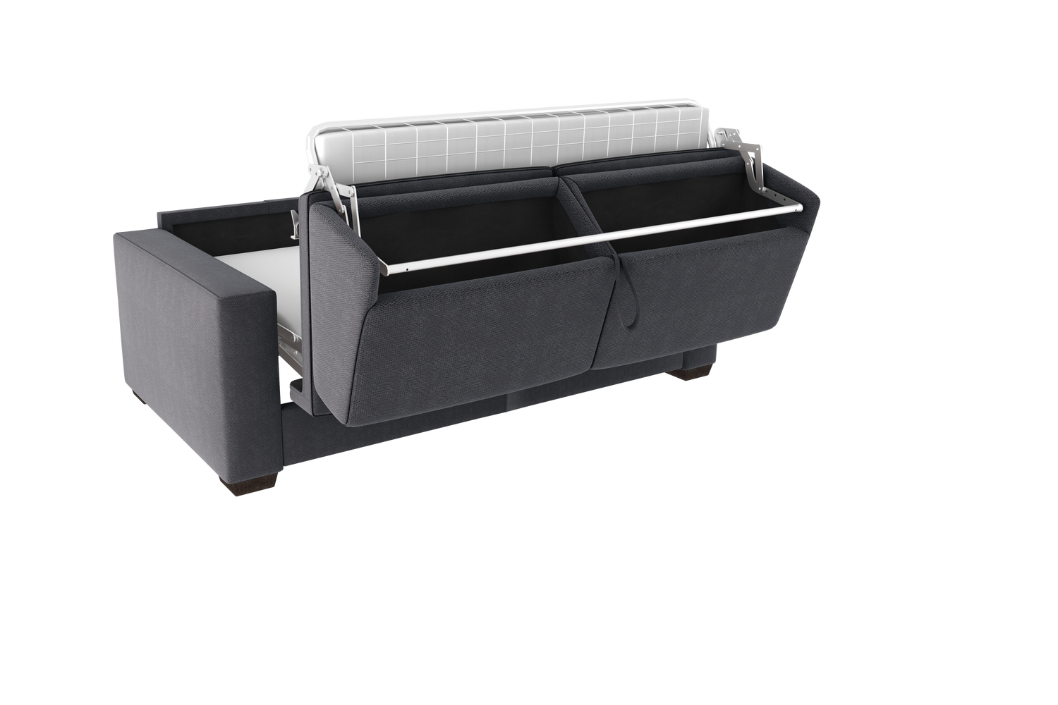 - Schienale: poliuretano espanso den 21 accoppiato con fibra di poliestere. È dotato di 2 pratici portaguanciali, per riporre i cuscini quando chiuso.