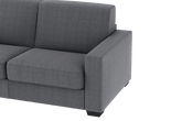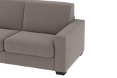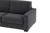 Un divano 3P dallo stile lineare ed essenziale. Il meccanismo interno con rete elettrosaldata consente, senza la rimozione dei sedili, di ottenere un vero letto. L’elevata qualità del poliuretano di cui è costituito il materasso di altezza 12cm completamente sfoderabile, accoppiato a materiali morbidi, ed ai rivestimenti delicati, lo rendono adatto ad un uso frequente. Il divano è prodotto con tessuto di alta qualità resistente all’abrasione. Interamente prodotto in UE.