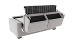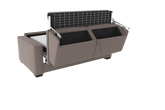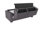- Schienale: poliuretano espanso den 21 accoppiato con fibra di poliestere. È dotato di 2 pratici portaguanciali, per riporre i cuscini quando chiuso.