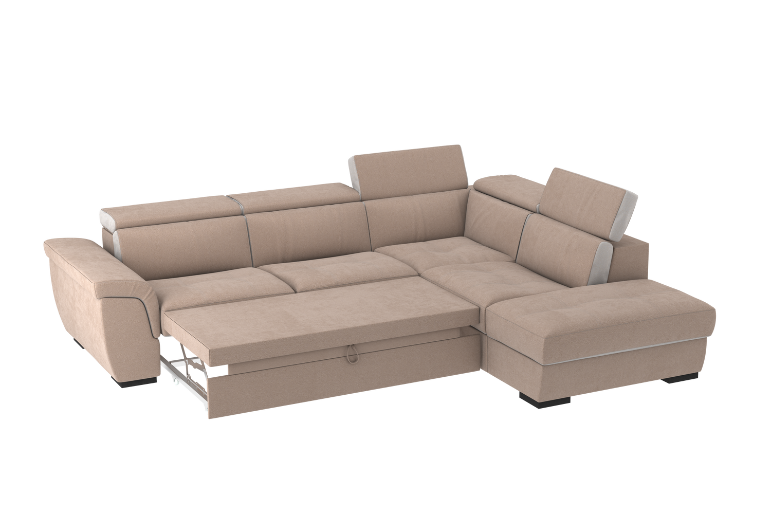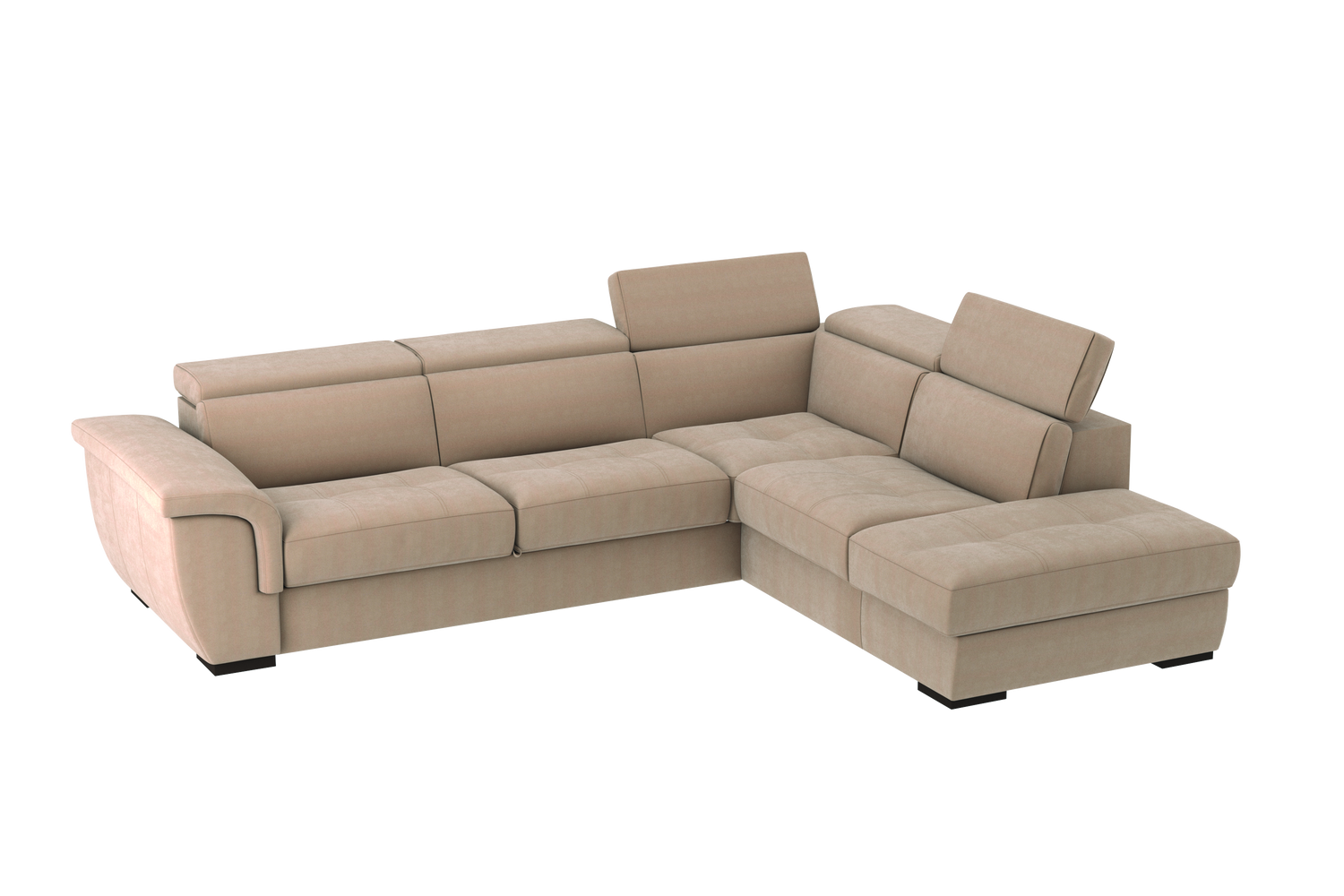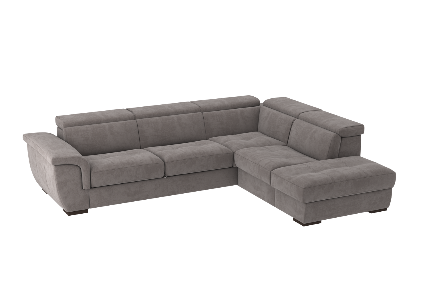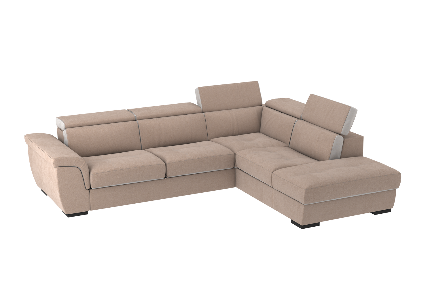 - Descrizione prodotto: questo divano angolare è reversibile il che significa che l'angolo puo’ essere posizionato sia a destra che a sinistra del divano. È perfetto per i grandi ambienti ed è esteticamente accattivante. È dotato di materasso ad estrazione complanare adatto per riposare le gambe durante i vostri momenti di relax, oppure a trasformarsi insieme alle sedute ed alla chaise longue in un letto rapido per ospiti dell'ultimo minuto. È dotato di una comodo pouf terminale munito di un ampio contenitore interno utile a riporre cuscini, coperte, giocattoli e quant'altro. Le sue dimensioni massime d'ingombro sono 288x240cm e le sedute sono profonde ben 58cm. area letto 210x118cm. È dotato di comodi poggiatesta regolabili in diverse posizioni fino a quella verticale.
