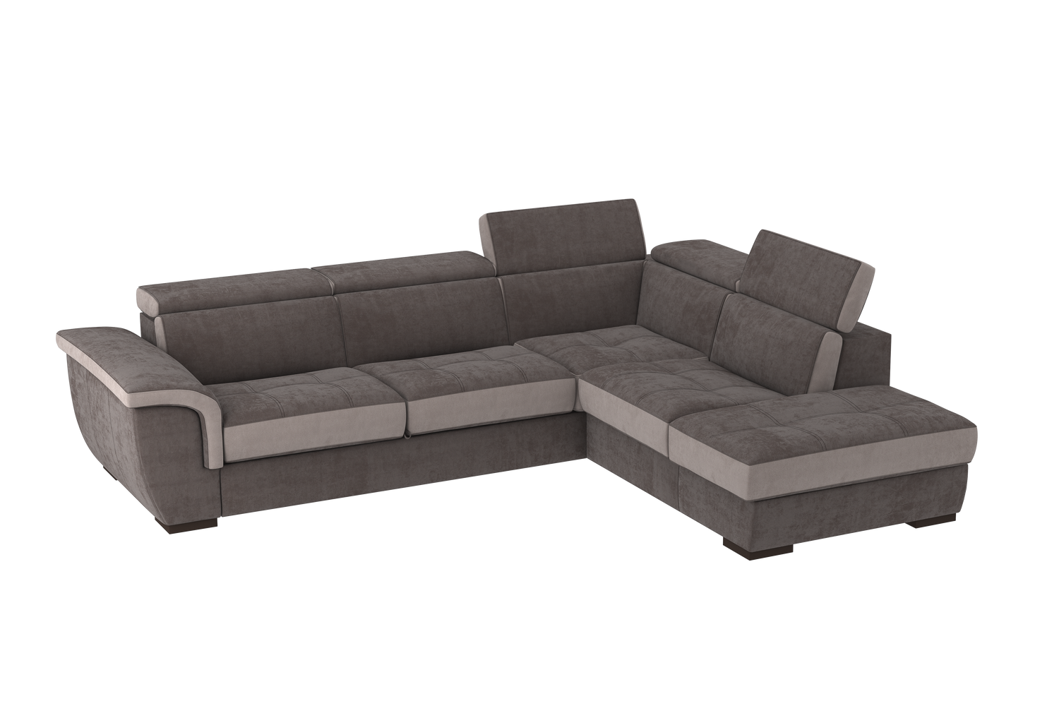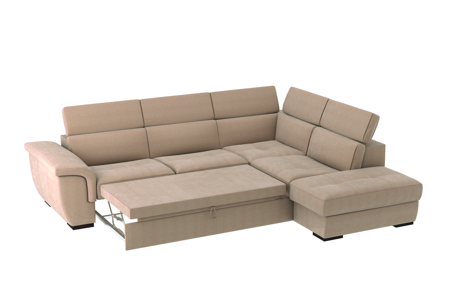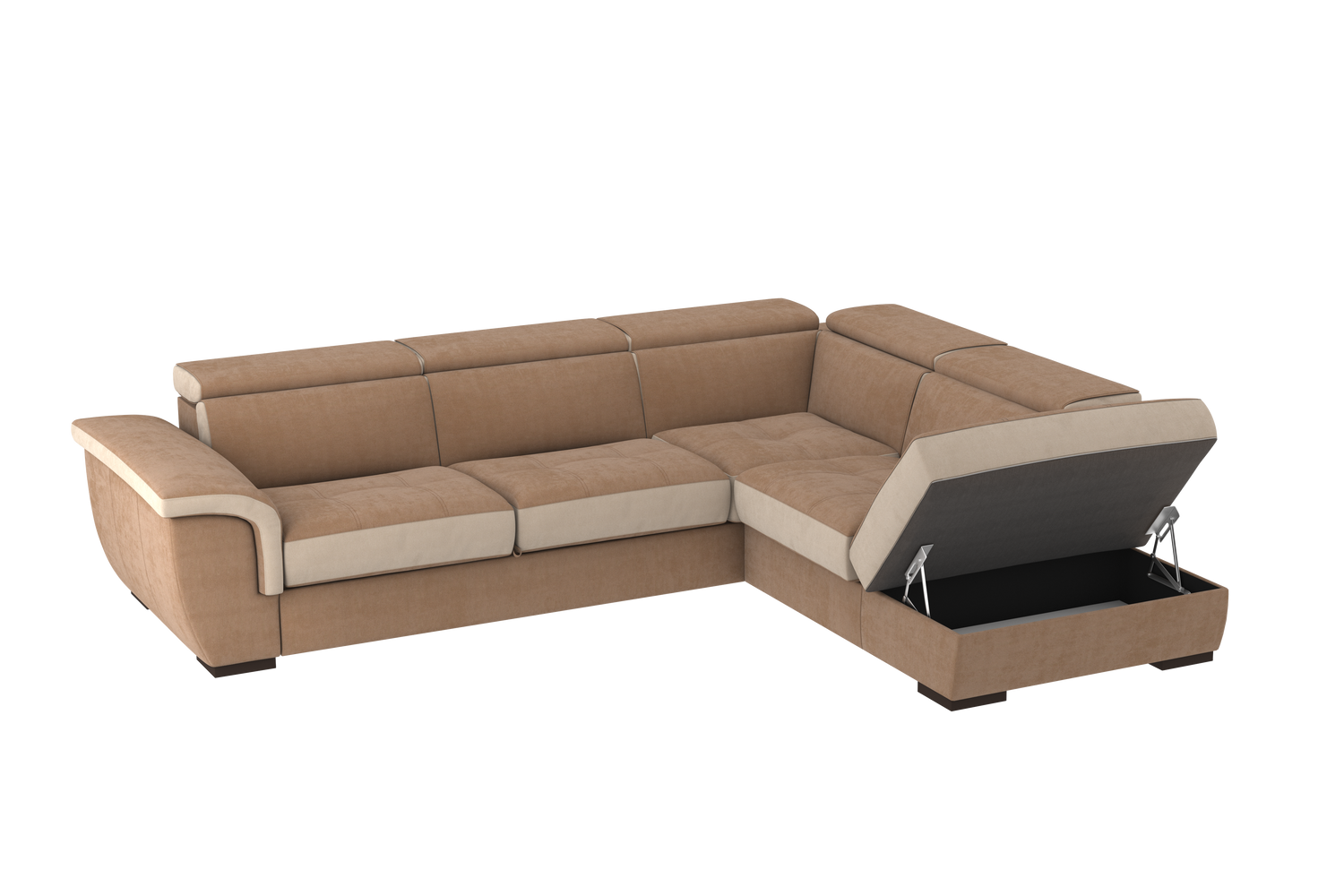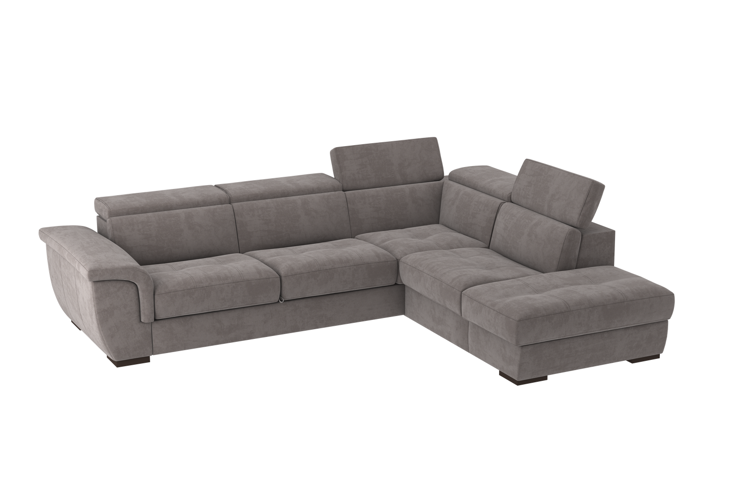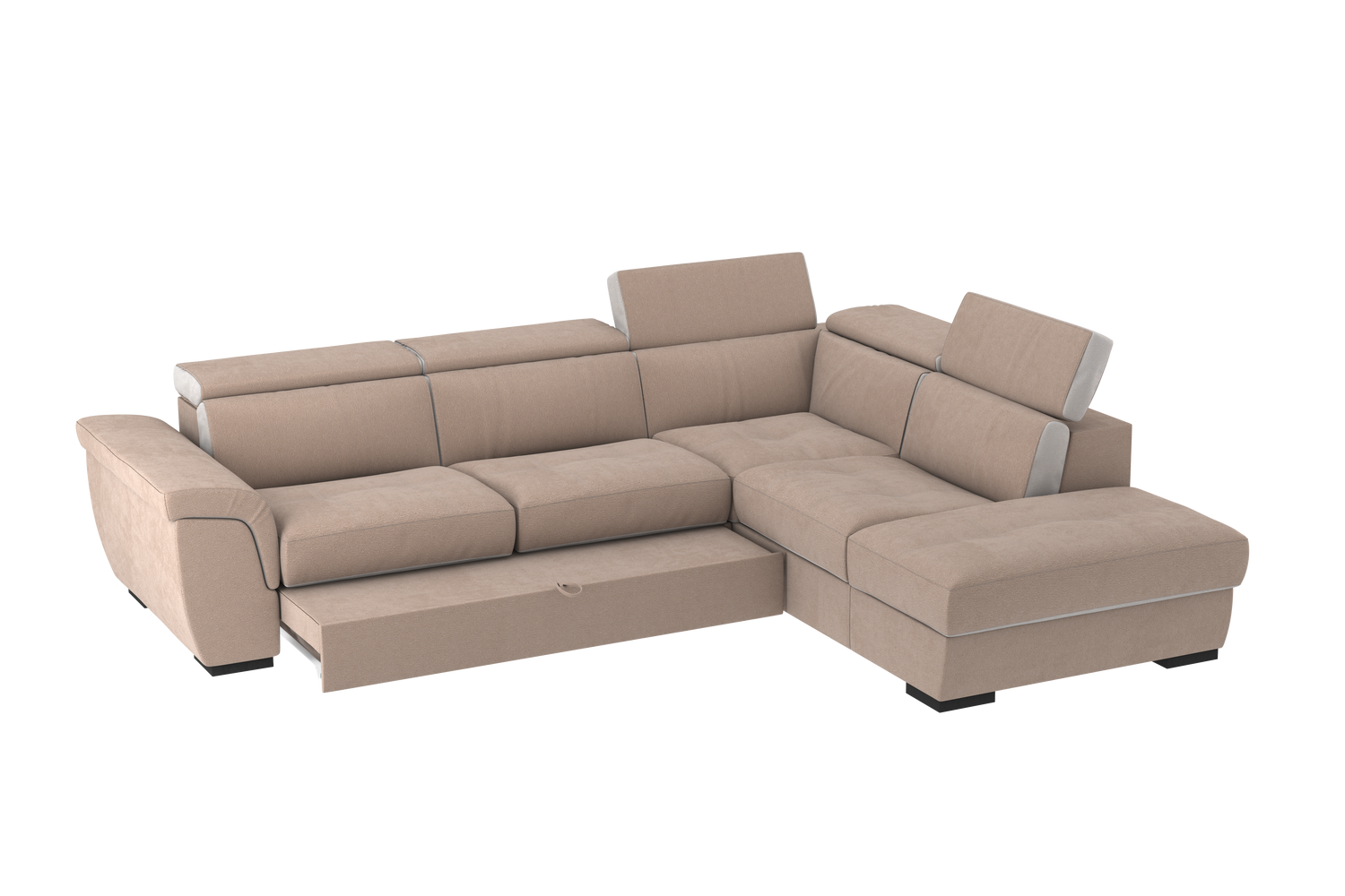 - Descrizione prodotto: questo divano angolare è reversibile il che significa che l'angolo puo’ essere posizionato sia a destra che a sinistra del divano. È perfetto per i grandi ambienti ed è esteticamente accattivante. È dotato di materasso ad estrazione complanare adatto per riposare le gambe durante i vostri momenti di relax, oppure a trasformarsi insieme alle sedute ed alla chaise longue in un letto rapido per ospiti dell'ultimo minuto. È dotato di una comodo pouf terminale munito di un ampio contenitore interno utile a riporre cuscini, coperte, giocattoli e quant'altro. Le sue dimensioni massime d'ingombro sono 288x240cm e le sedute sono profonde ben 58cm. area letto 210x118cm. È dotato di comodi poggiatesta regolabili in diverse posizioni fino a quella verticale.