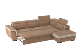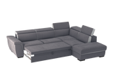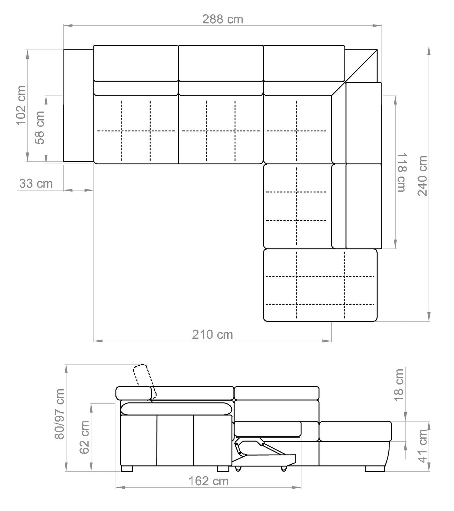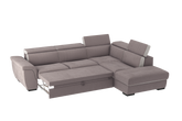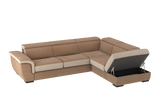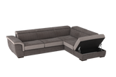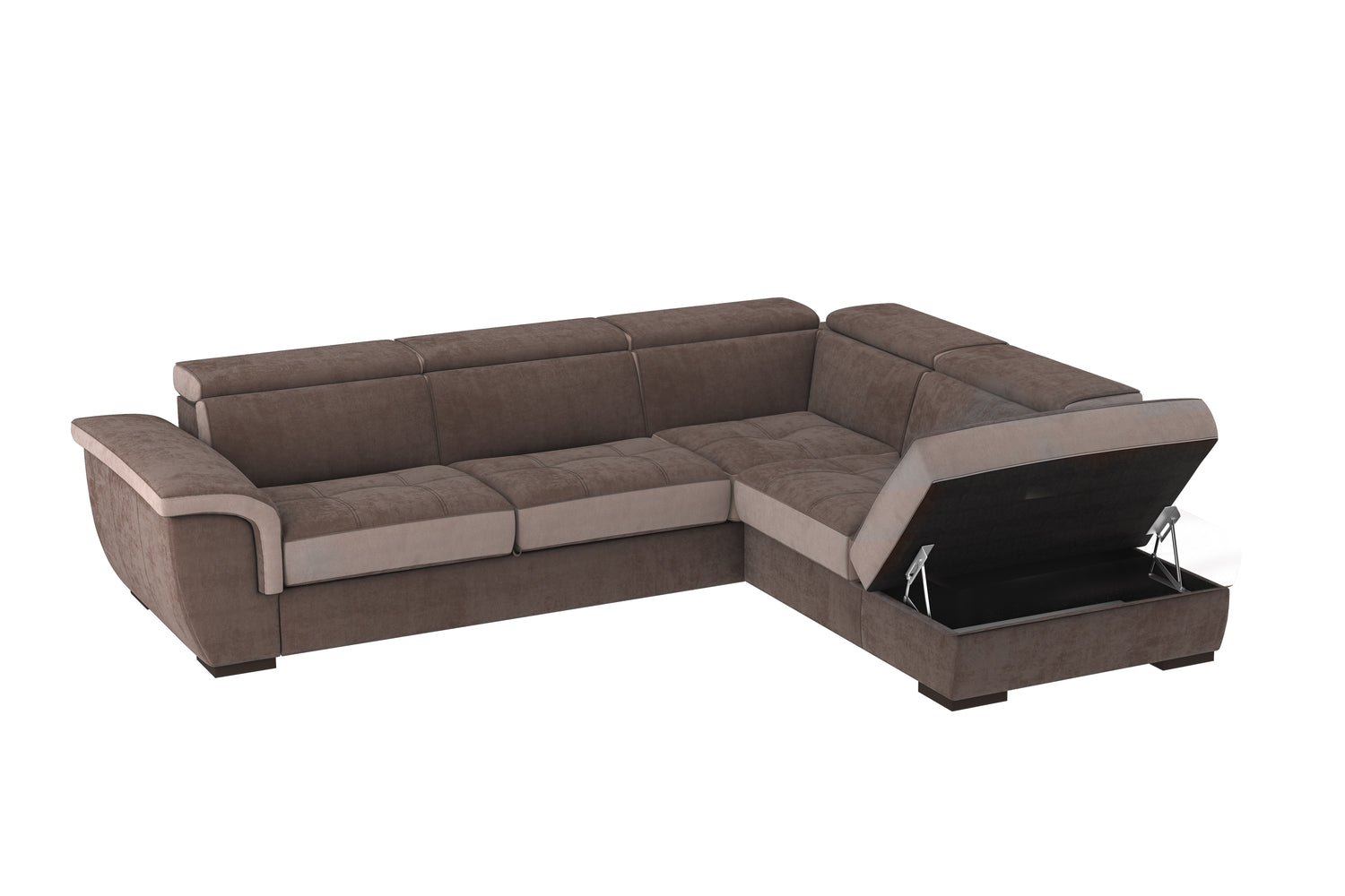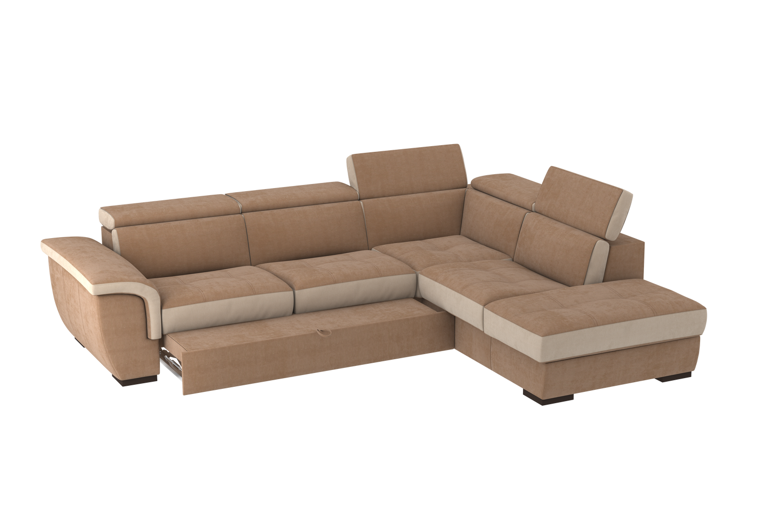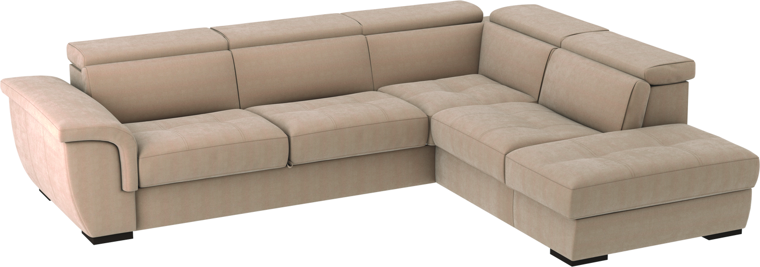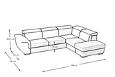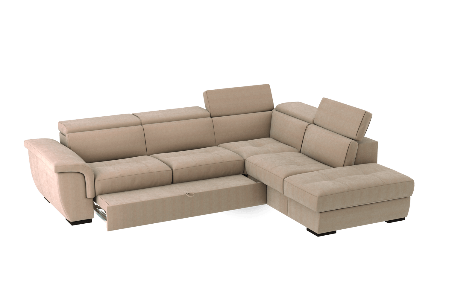 - Descrizione prodotto: questo divano angolare è reversibile il che significa che l'angolo puo’ essere posizionato sia a destra che a sinistra del divano. È perfetto per i grandi ambienti ed è esteticamente accattivante. È dotato di materasso ad estrazione complanare adatto per riposare le gambe durante i vostri momenti di relax, oppure a trasformarsi insieme alle sedute ed alla chaise longue in un letto rapido per ospiti dell'ultimo minuto. È dotato di una comodo pouf terminale munito di un ampio contenitore interno utile a riporre cuscini, coperte, giocattoli e quant'altro. Le sue dimensioni massime d'ingombro sono 288x240cm e le sedute sono profonde ben 58cm. area letto 210x118cm. È dotato di comodi poggiatesta regolabili in diverse posizioni fino a quella verticale.
