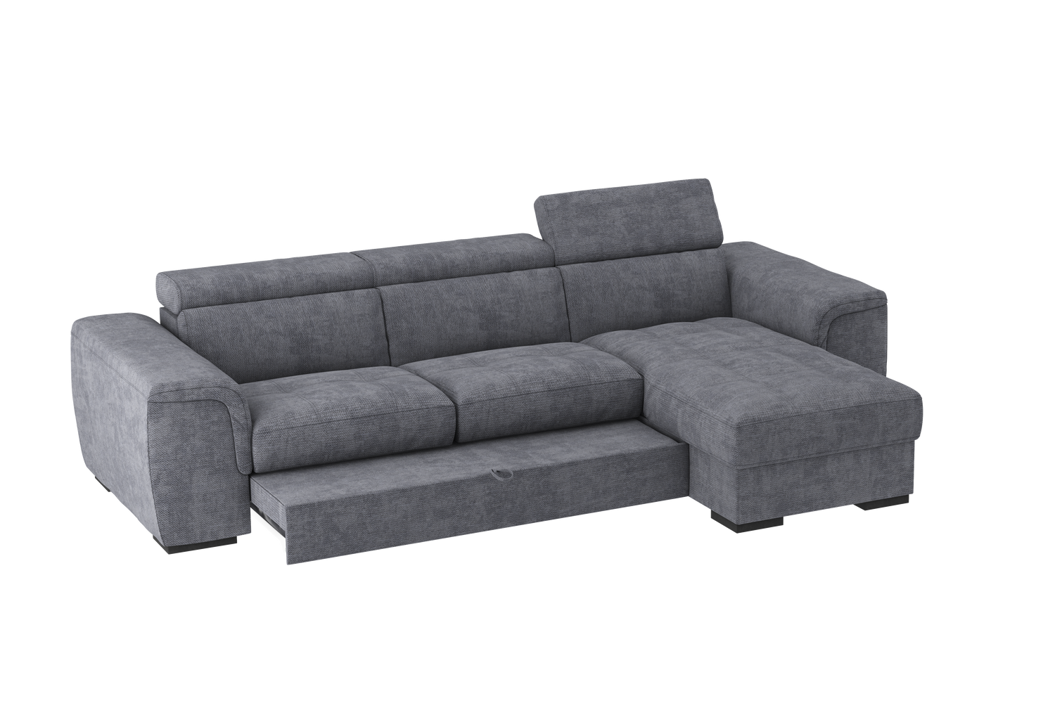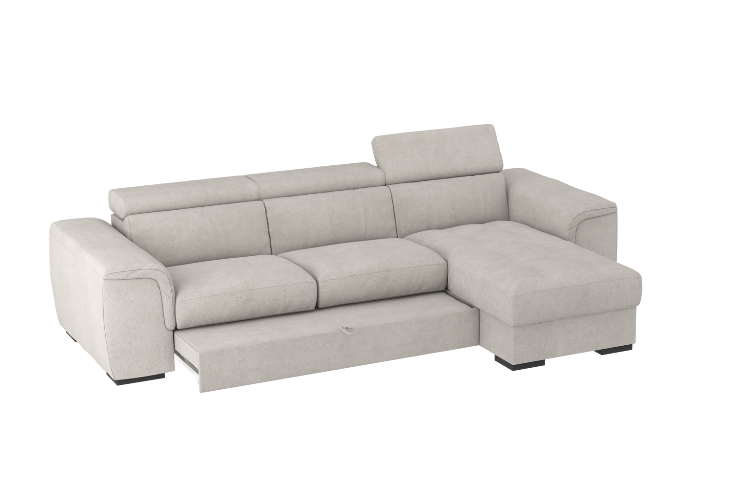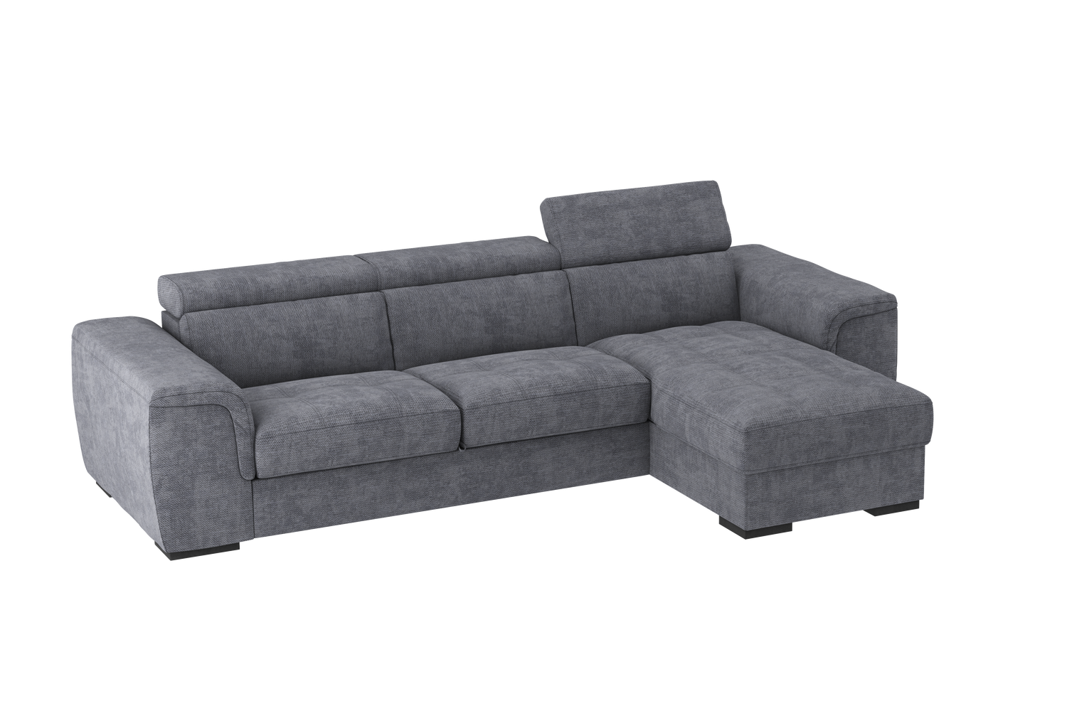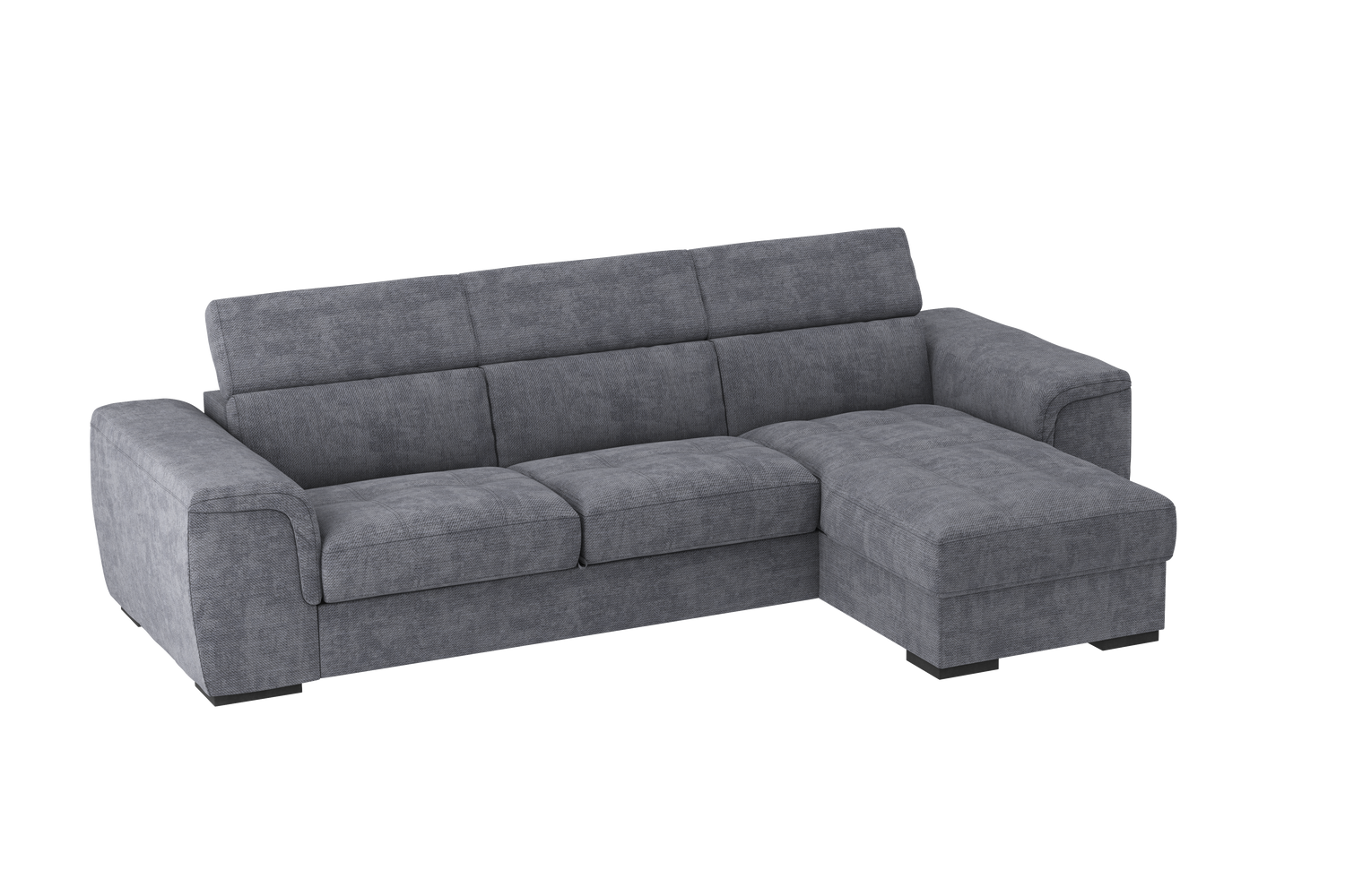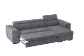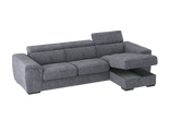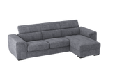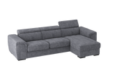 Il Divano 2 posti con chaise longue reversibile Parigi, offre il massimo confort grazie ai soffici poggiareni integrati alla struttura, realizzati in poliuretano espanso di alta qualità. I poggiatesta, regolabili in 5 posizioni offrono un ulteriore comfort . Il bracciolo dalle linee morbide e accoglienti adatto per poggiare anche il capo, gli conferisce una estetica versatile e gradevole che gli consente di essere collocato in qualsiasi ambiente sia classico che moderno. Il divano Parigi è pratico ed adatto per chi ama condividere i momenti di relax con la famiglia. Le sedute sono molto confortevoli e utilizzando il carrello estraibile, ci si può comodamente distendere per guardare la tv, leggere un libro o riposarsi. Estraendo il carrello, che sollevandosi si allinea alle sedute, si crea un piano riposo assimilabile ad un letto. La chaise longue ha un capiente vano contenitore per riporre biancheria, cuscini e molto altro. Questo divano è realizzato in vari colori e tessuti morbidi al tatto e testati .