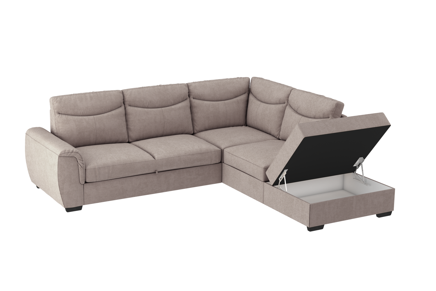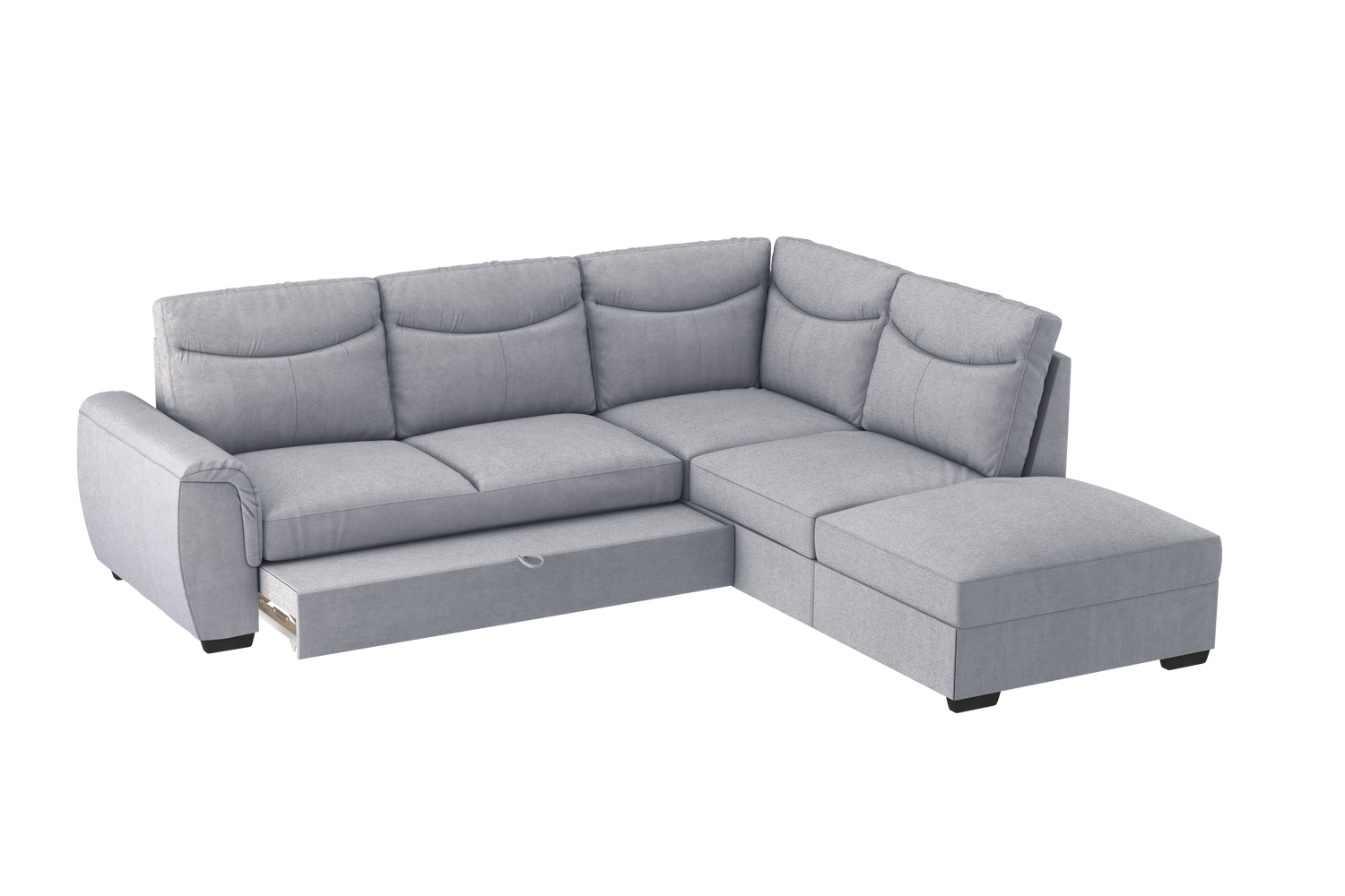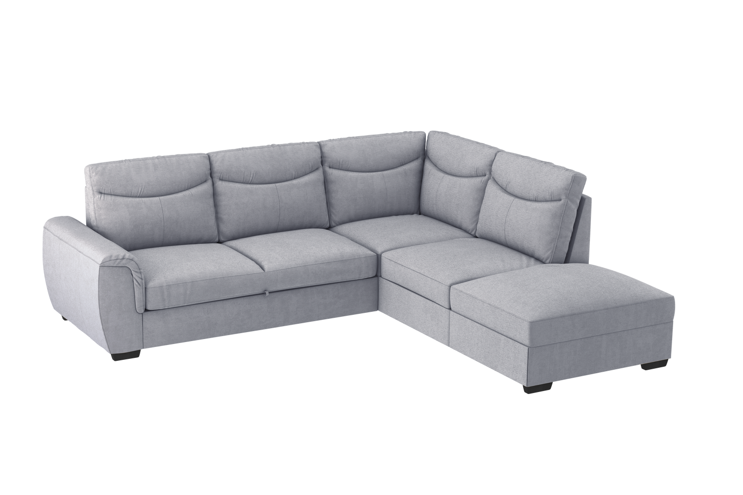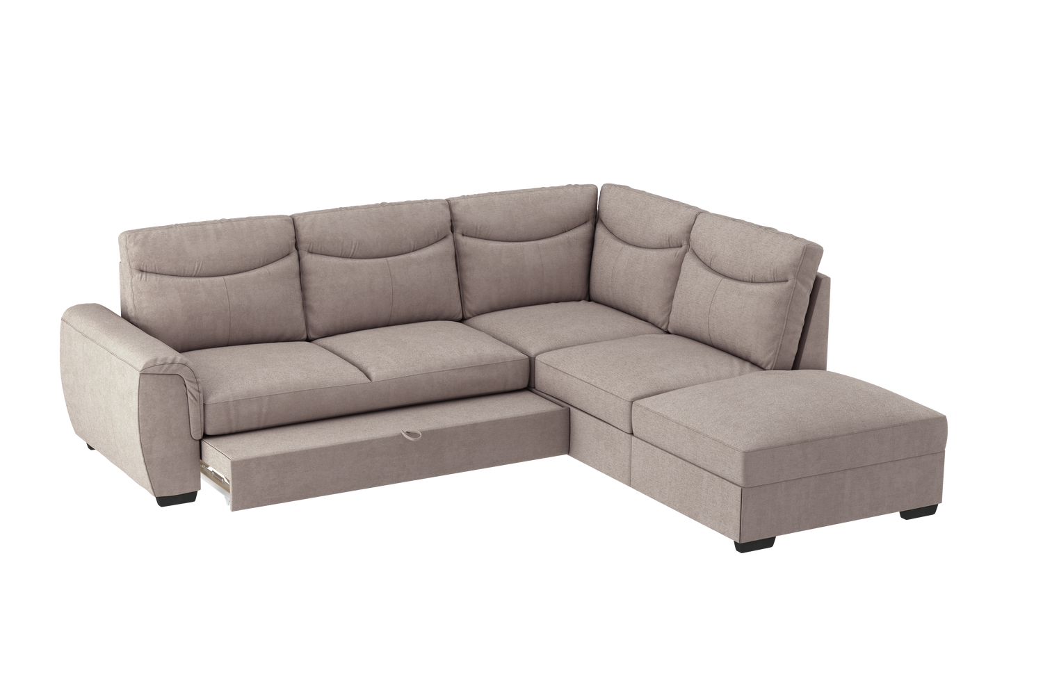 Divano mod. Alcante con angolo penisola reversibile, pouf contenitore, letto estraibile, 234X212cm (LxP), penisola di 213cm