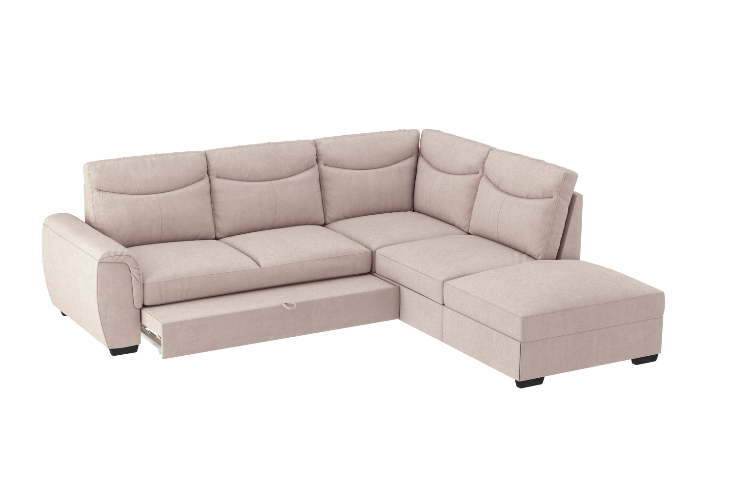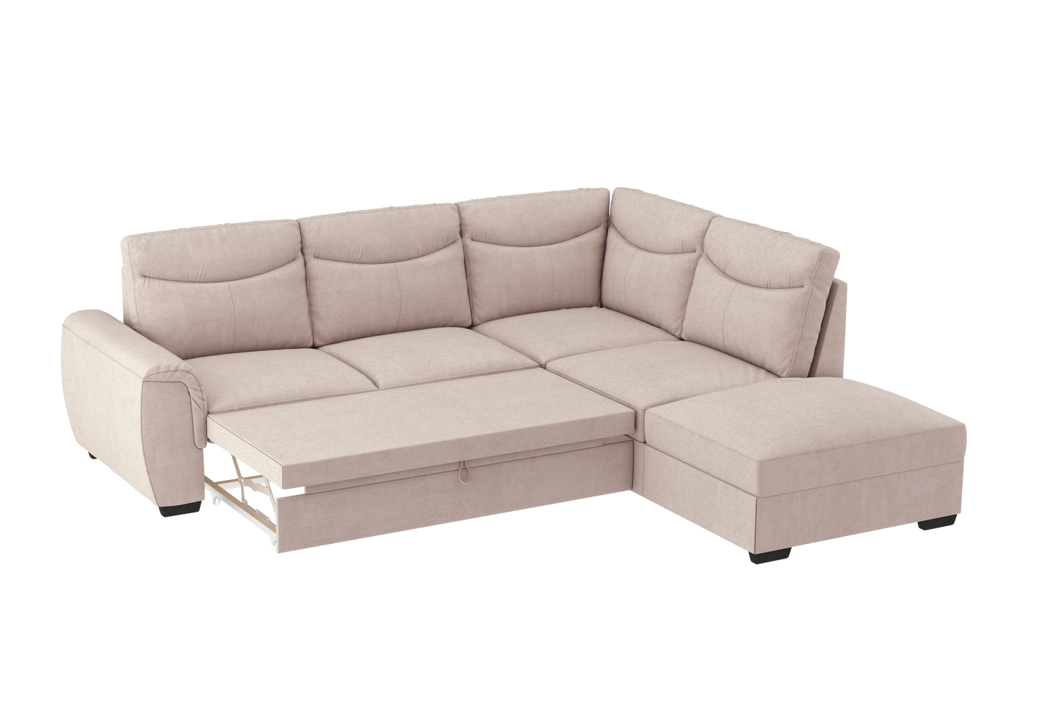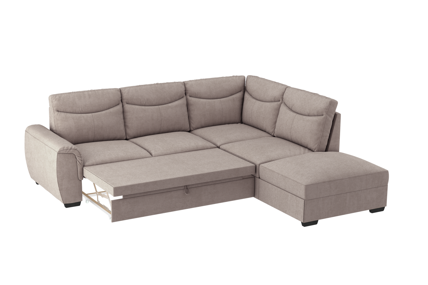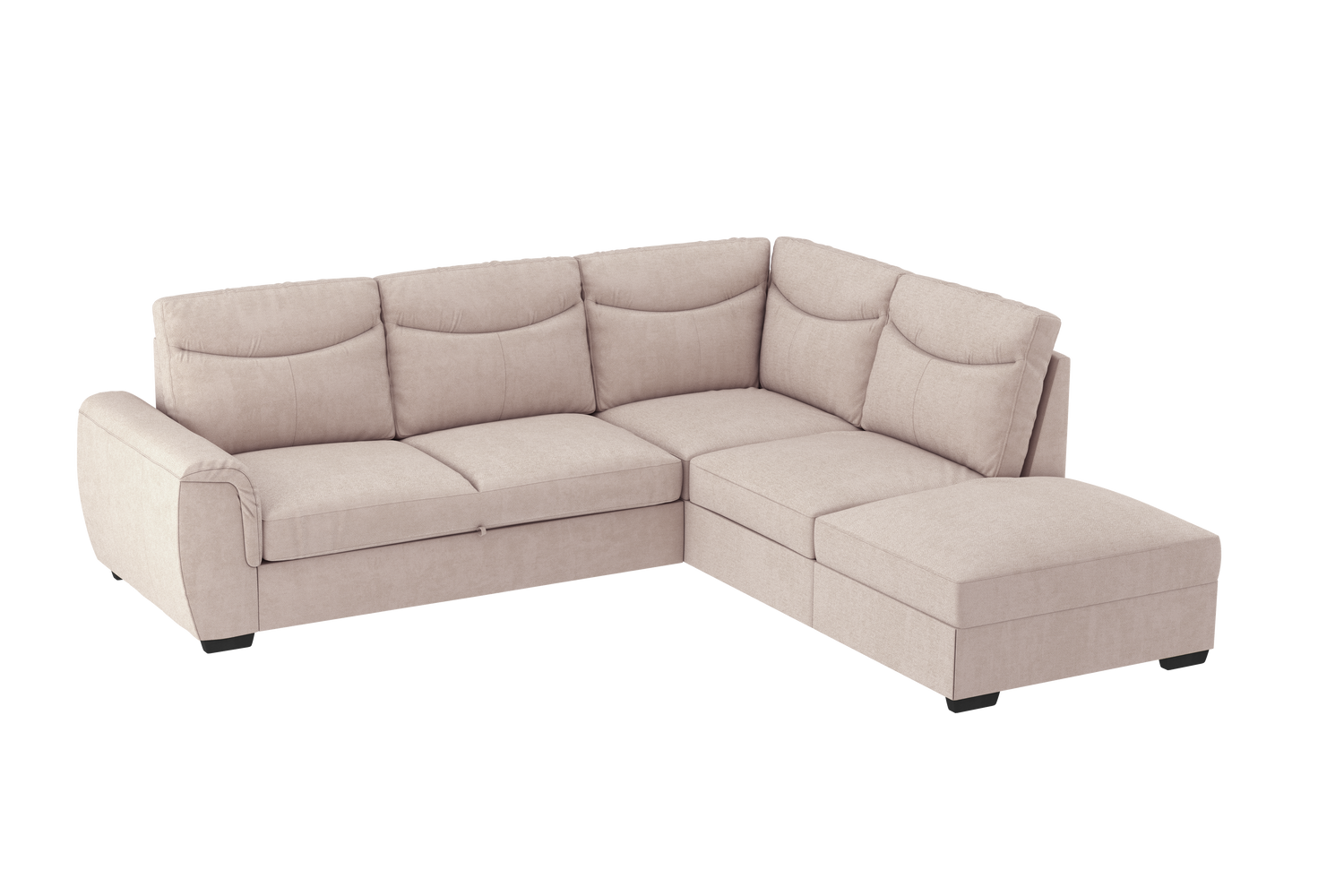 Divano mod. Alcante con angolo penisola reversibile, pouf contenitore, letto estraibile, 234X212cm (LxP), penisola di 213cm