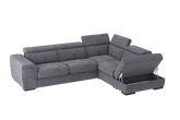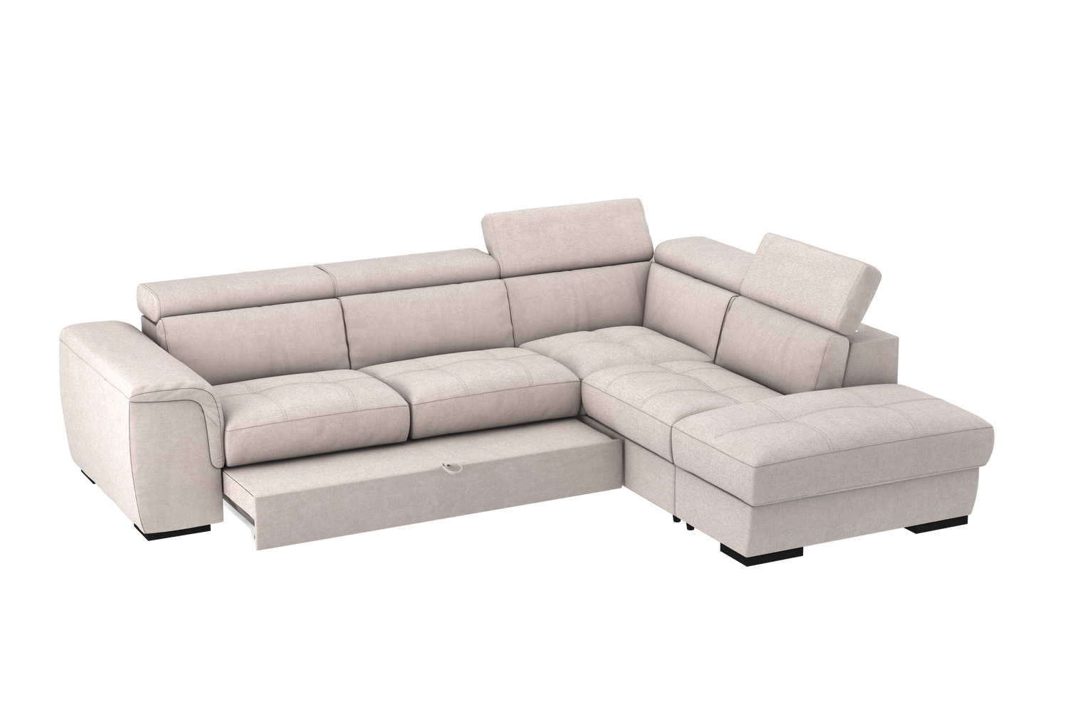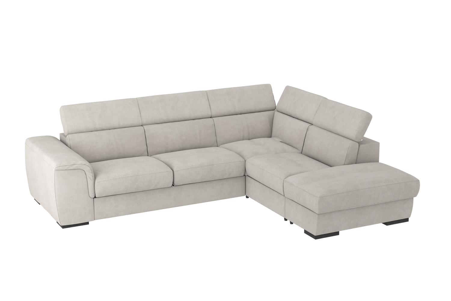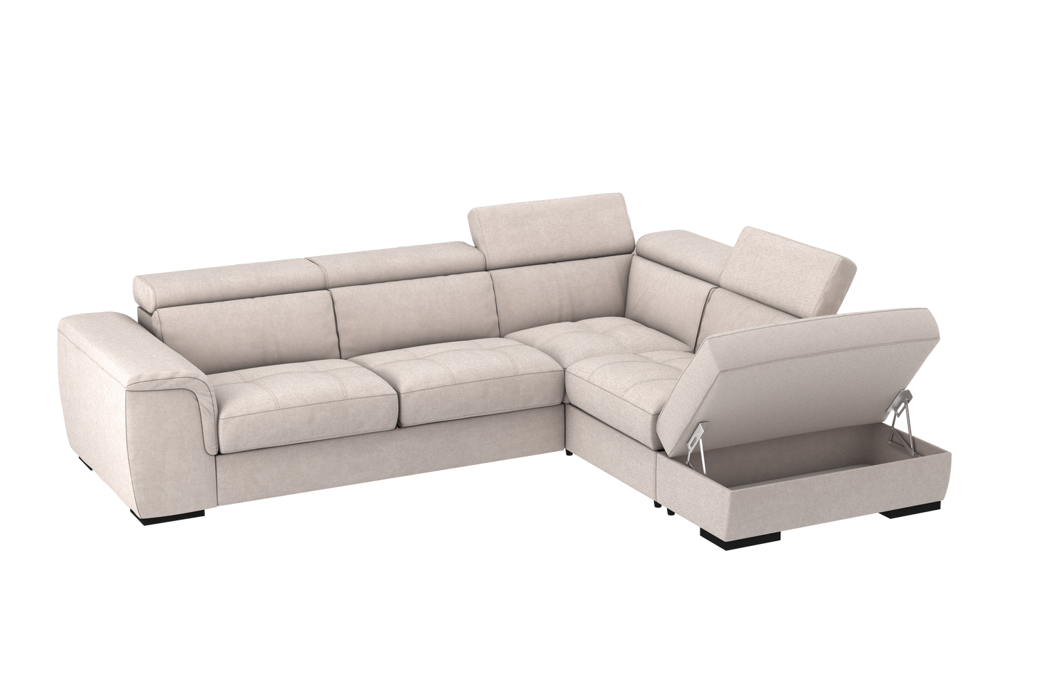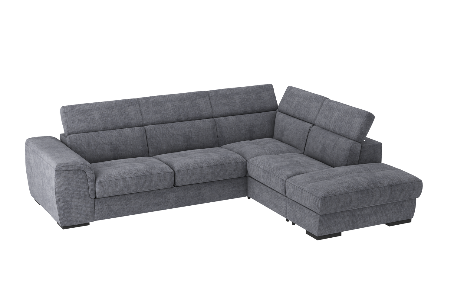 Il Divano 2 posti con chaise longue reversibile Parigi, offre il massimo confort grazie ai soffici poggiareni integrati alla struttura, realizzati in poliuretano espanso di alta qualità. I poggiatesta, regolabili in 5 posizioni offrono un ulteriore comfort . Il bracciolo dalle linee morbide e accoglienti adatto per poggiare anche il capo, gli conferisce una estetica versatile e gradevole che gli consente di essere collocato in qualsiasi ambiente sia classico che moderno. Il divano Parigi è pratico ed adatto per chi ama condividere i momenti di relax con la famiglia. Le sedute sono molto confortevoli e utilizzando il carrello estraibile, ci si può comodamente distendere per guardare la tv, leggere un libro o riposarsi. Estraendo il carrello, che sollevandosi si allinea alle sedute, si crea un piano riposo assimilabile ad un letto. La chaise longue ha un capiente vano contenitore per riporre biancheria, cuscini e molto altro. Questo divano è realizzato in vari colori e tessuti morbidi al tatto e testati .