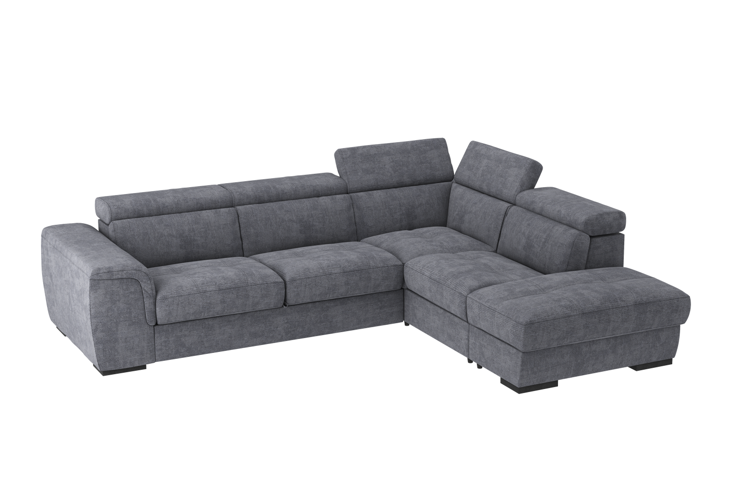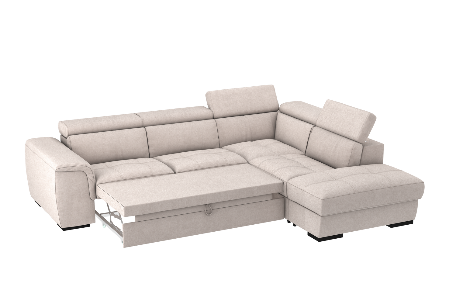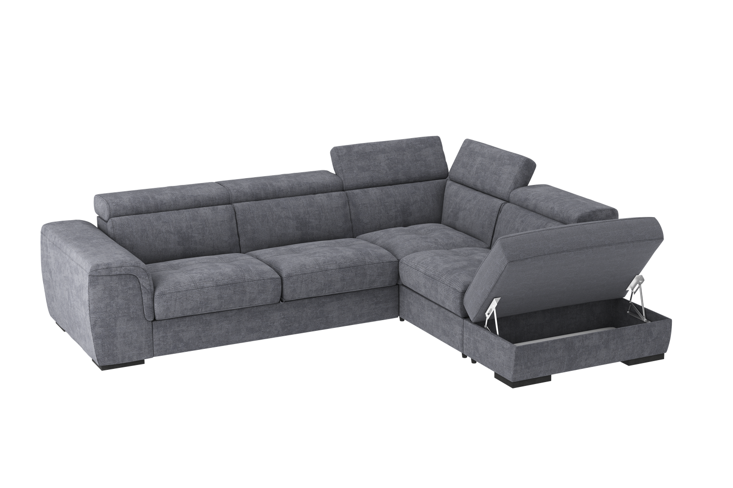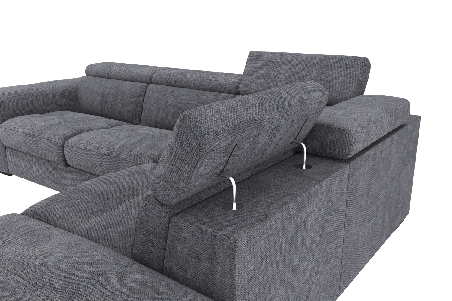 Il Divano 2 posti con chaise longue reversibile Parigi, offre il massimo confort grazie ai soffici poggiareni integrati alla struttura, realizzati in poliuretano espanso di alta qualità. I poggiatesta, regolabili in 5 posizioni offrono un ulteriore comfort . Il bracciolo dalle linee morbide e accoglienti adatto per poggiare anche il capo, gli conferisce una estetica versatile e gradevole che gli consente di essere collocato in qualsiasi ambiente sia classico che moderno. Il divano Parigi è pratico ed adatto per chi ama condividere i momenti di relax con la famiglia. Le sedute sono molto confortevoli e utilizzando il carrello estraibile, ci si può comodamente distendere per guardare la tv, leggere un libro o riposarsi. Estraendo il carrello, che sollevandosi si allinea alle sedute, si crea un piano riposo assimilabile ad un letto. La chaise longue ha un capiente vano contenitore per riporre biancheria, cuscini e molto altro. Questo divano è realizzato in vari colori e tessuti morbidi al tatto e testati .