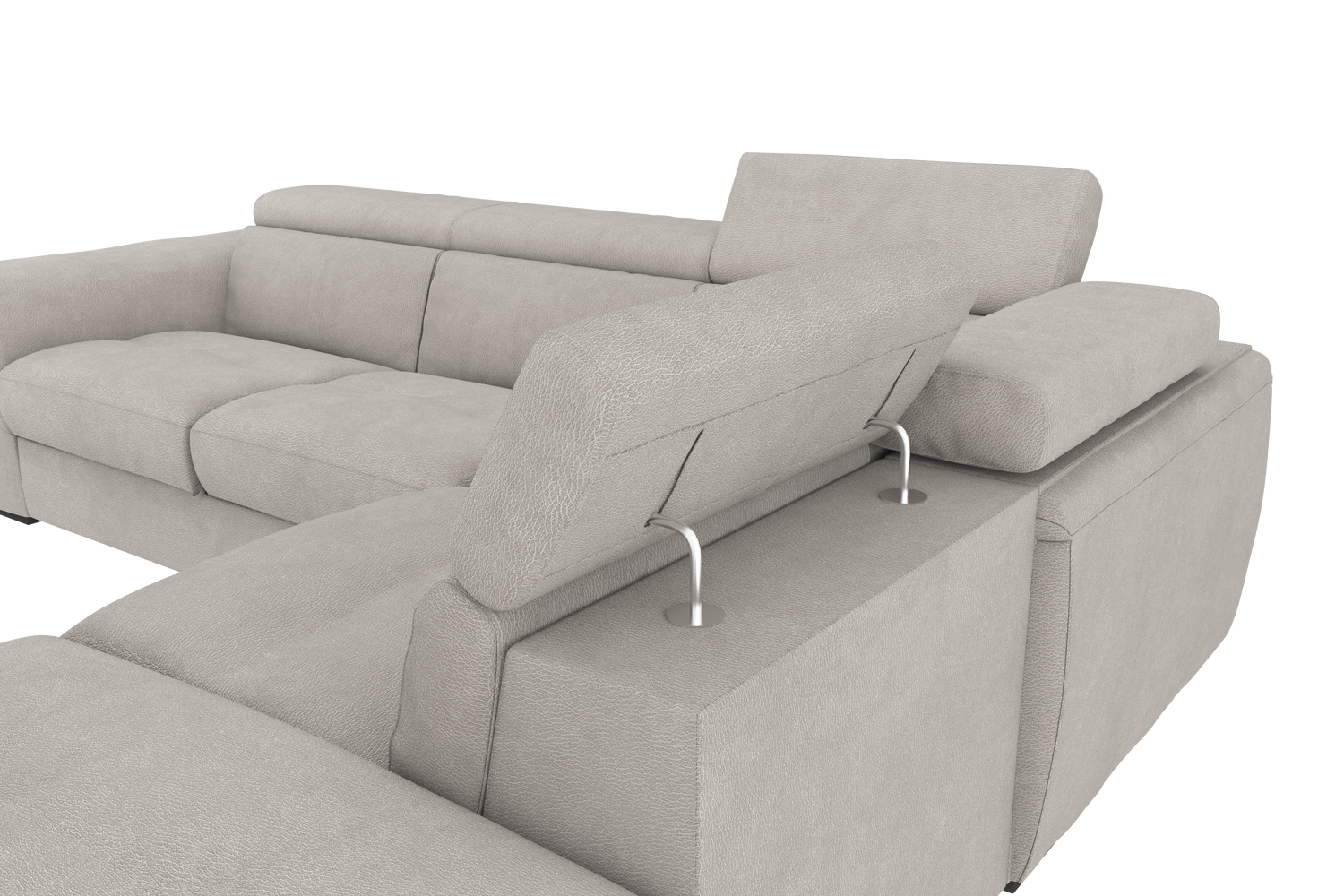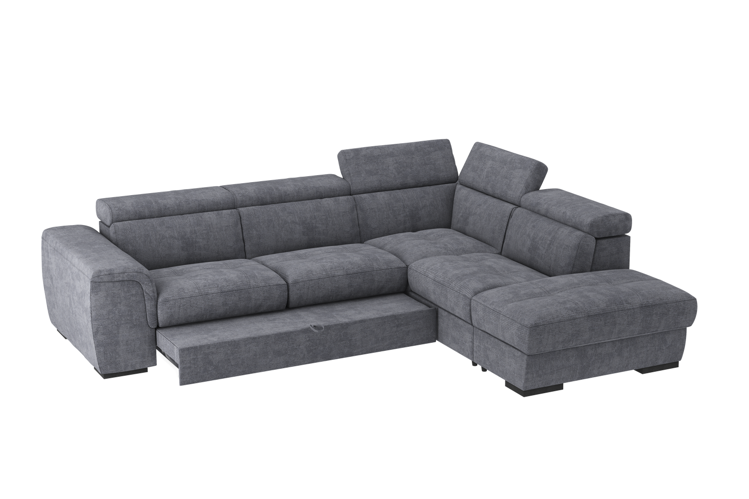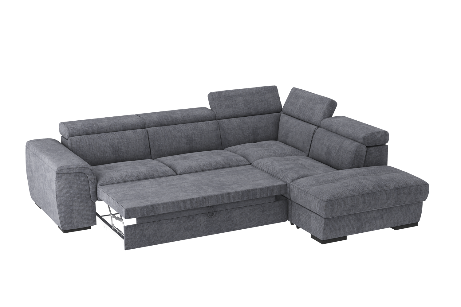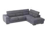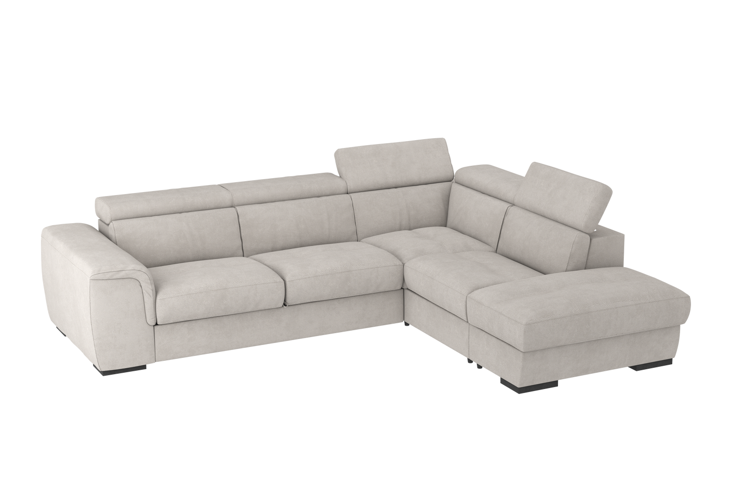 Il Divano 2 posti con chaise longue reversibile Parigi, offre il massimo confort grazie ai soffici poggiareni integrati alla struttura, realizzati in poliuretano espanso di alta qualità. I poggiatesta, regolabili in 5 posizioni offrono un ulteriore comfort . Il bracciolo dalle linee morbide e accoglienti adatto per poggiare anche il capo, gli conferisce una estetica versatile e gradevole che gli consente di essere collocato in qualsiasi ambiente sia classico che moderno. Il divano Parigi è pratico ed adatto per chi ama condividere i momenti di relax con la famiglia. Le sedute sono molto confortevoli e utilizzando il carrello estraibile, ci si può comodamente distendere per guardare la tv, leggere un libro o riposarsi. Estraendo il carrello, che sollevandosi si allinea alle sedute, si crea un piano riposo assimilabile ad un letto. La chaise longue ha un capiente vano contenitore per riporre biancheria, cuscini e molto altro. Questo divano è realizzato in vari colori e tessuti morbidi al tatto e testati .