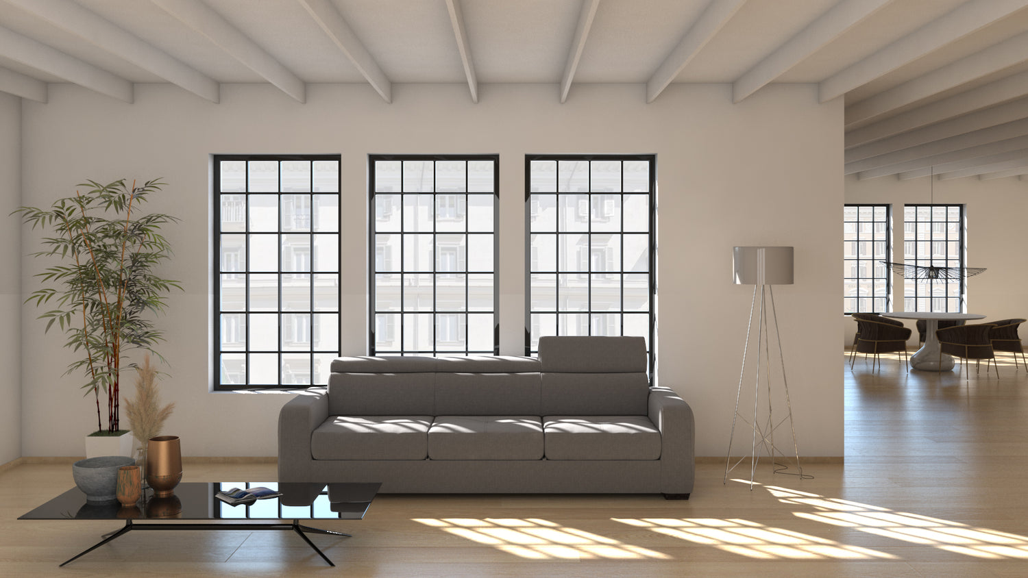 Il Divano LIPSIA 3 posti con grande pouf estraibile, offre il massimo confort grazie ai soffici poggiareni integrati alla struttura, ai poggiatesta reclinabili ed alla seduta, realizzati in poliuretano espanso di alta qualità trapuntata con cuciture in tinta. Il bracciolo dalle linee semplici e leggermente bombate ed impunturate, gli consentono di essere collocato in qualsiasi ambiente sia classico che moderno.