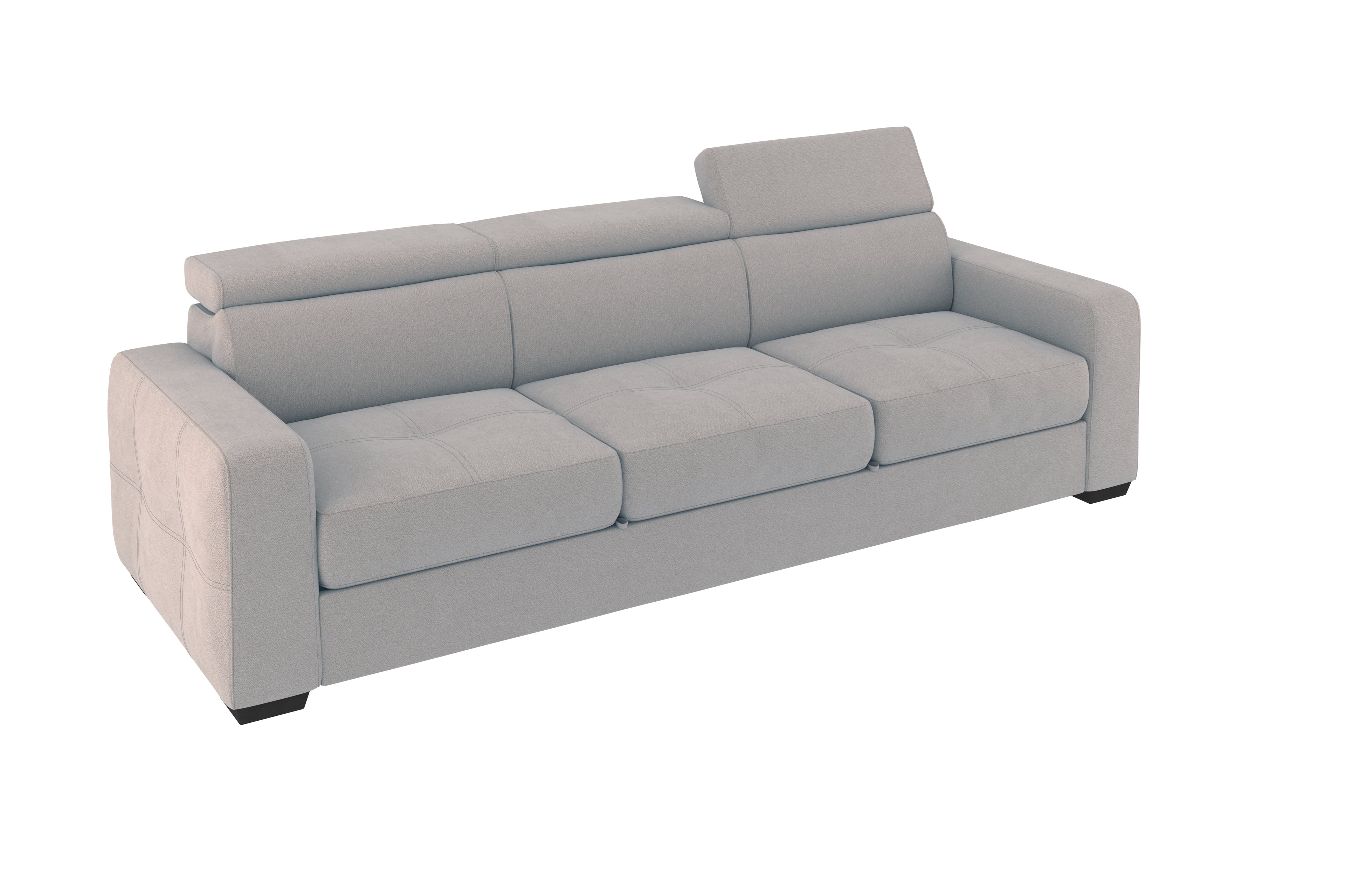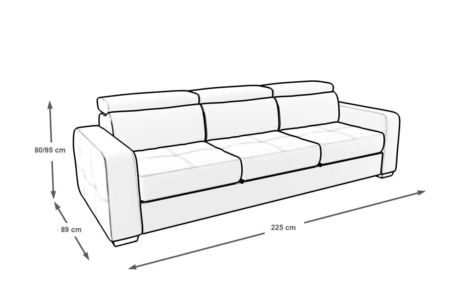 • Descrizione prodotto: questo divano letto a 3 posti è adatto a qualsiasi ambiente. È dotato di un grande pouf estraibile utile per distendere le gambe nei momenti di relax, oppure a trasformarsi insieme alle sedute in un letto rapido per ospiti dell'ultimo minuto. Le sue dimensioni massime d'ingombro sono 225x89cm e le sedute sono profonde ben 58cm.    area letto 190x125cm. È dotato di comodi poggiatesta regolabili in diverse posizioni fino a quella verticale