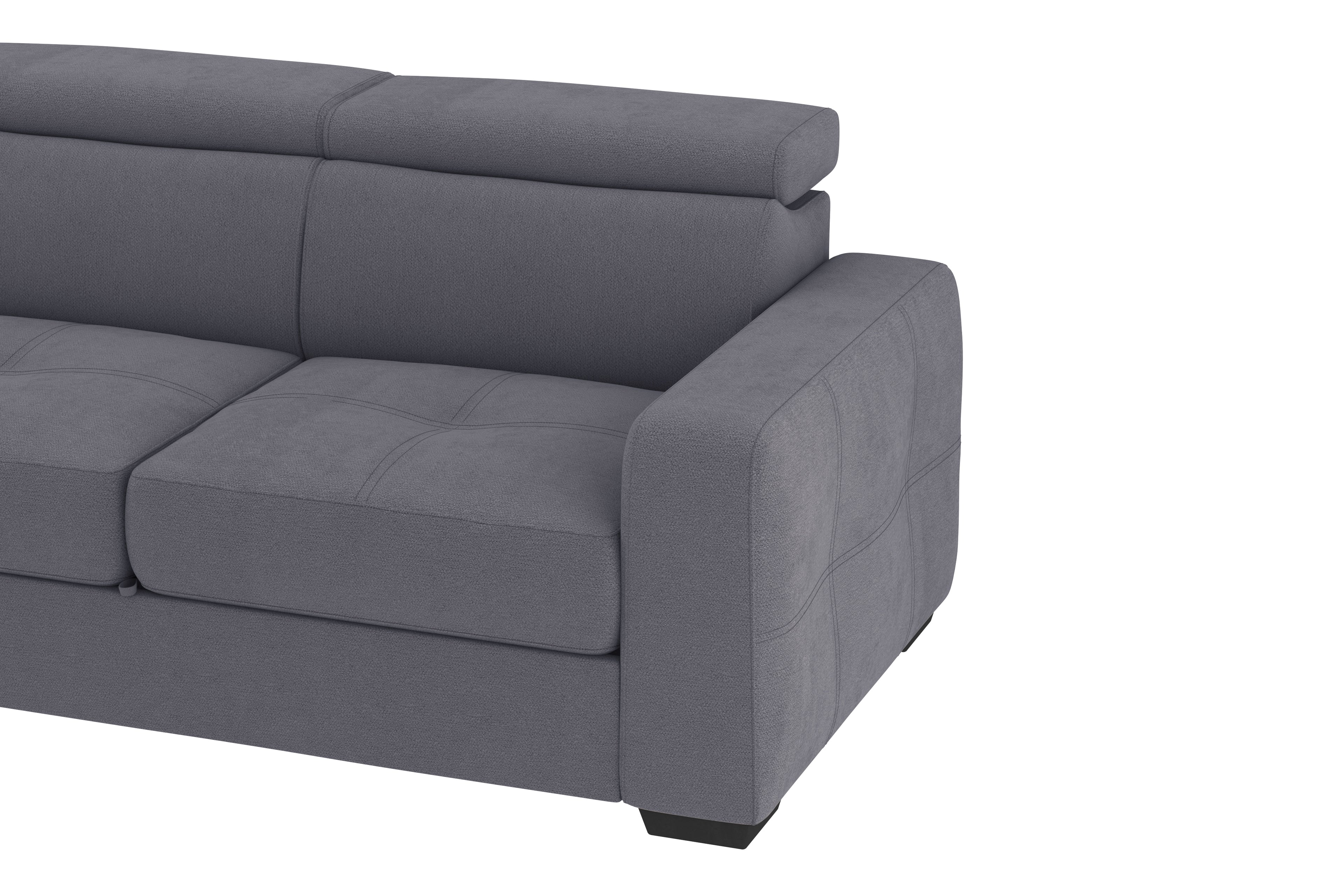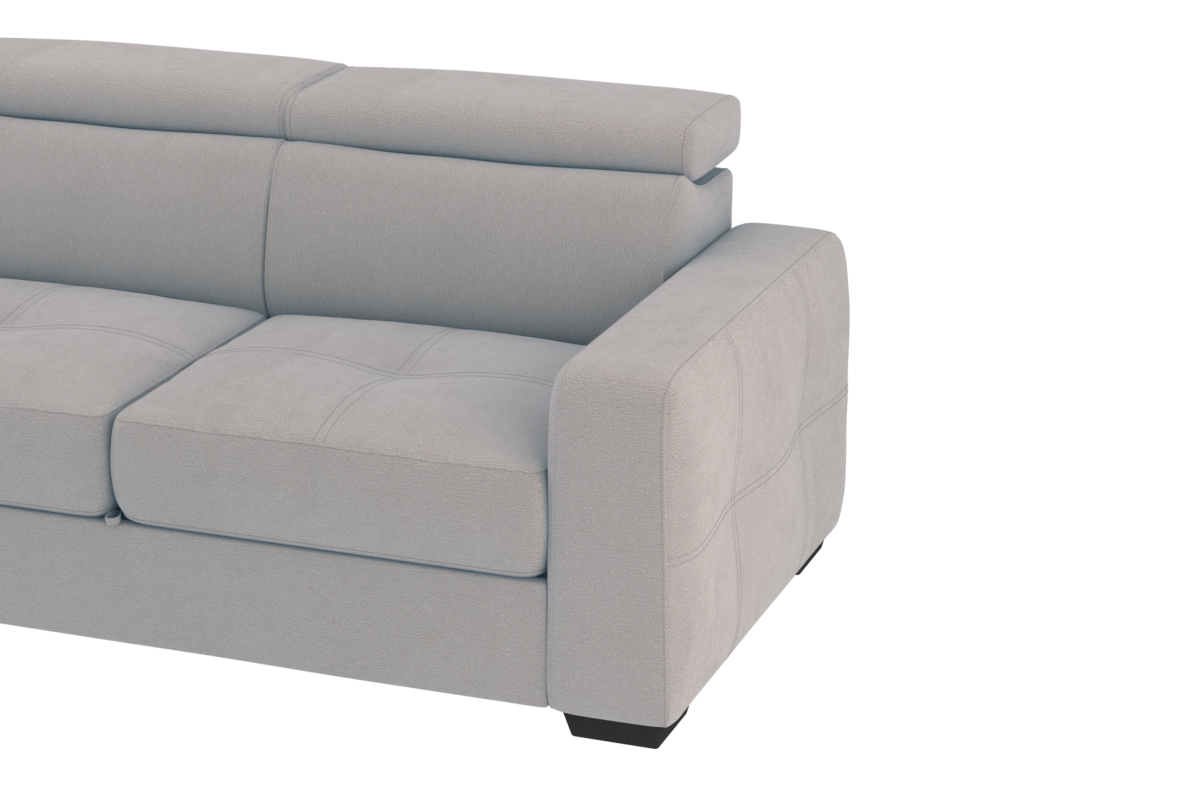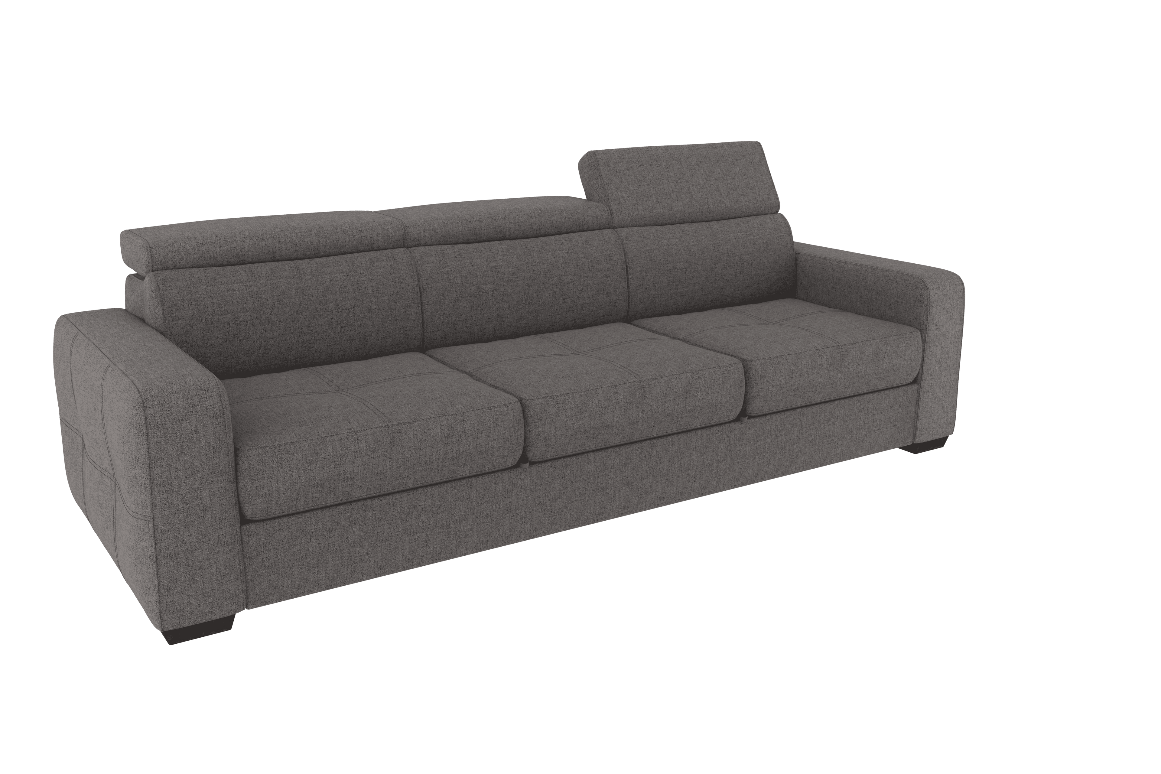 Un divano 3 posti con grande pouf estraibile dallo stile moderno e dalle dimensioni generose. Il un meccanismo inferiore scorrevole, consente di estrarre un ripiano che allineandosi alla seduta crea un’ampia superfice letto. Il divano è prodotto con tessuto di alta qualità resistente all’abrasione. Interamente prodotto in UE.