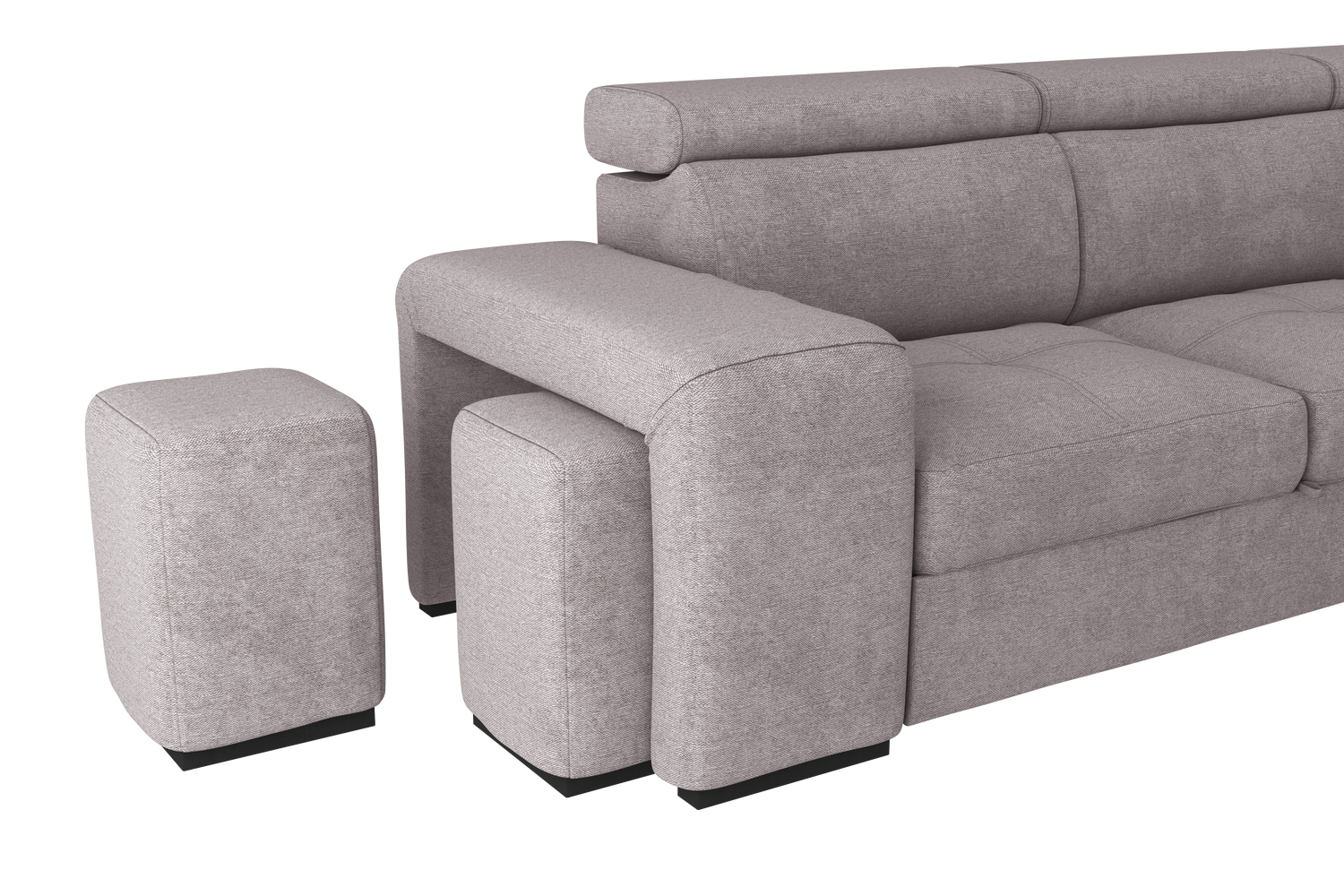 ✅ DESCRIZIONE PRODOTTO: il divano è reversibile il che significa che l'angolo può essere posizionato sia a destra che a sinistra del divano, è dotato di materasso ad estrazione complanare adatto per riposare le gambe durante i vostri momenti di relax, oppure a trasformarsi insieme alle sedute ed all'angolo in un letto rapido per ospiti dell'ultimo minuto, inoltre è dotato di un pouf terminale con ampio contenitore interno utile a riporre cuscini, coperte, giocattoli e quant'altro.Bracciolo con 2 pouf integrati da utilizzare come poggiapiedi o come sedute aggiuntive.