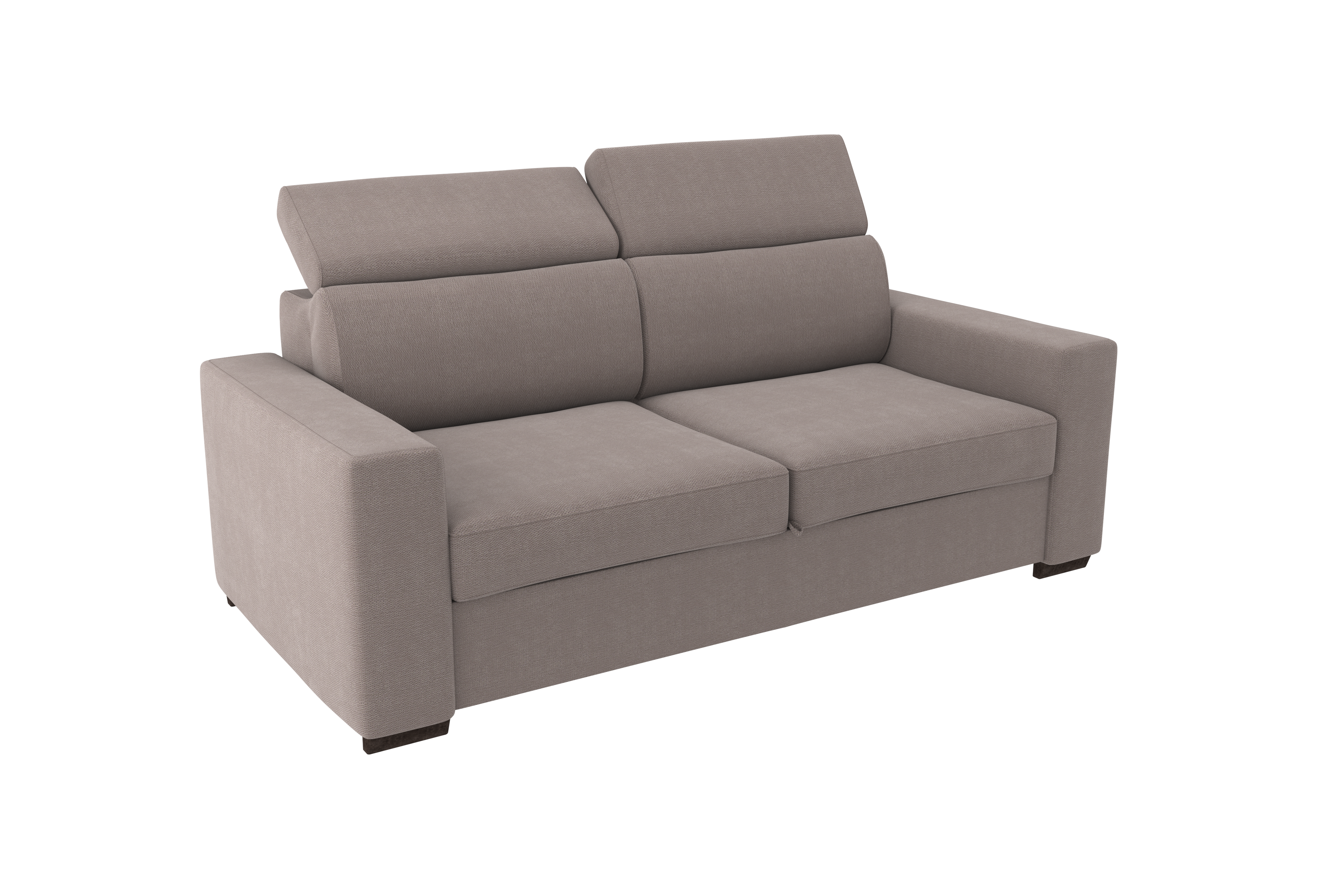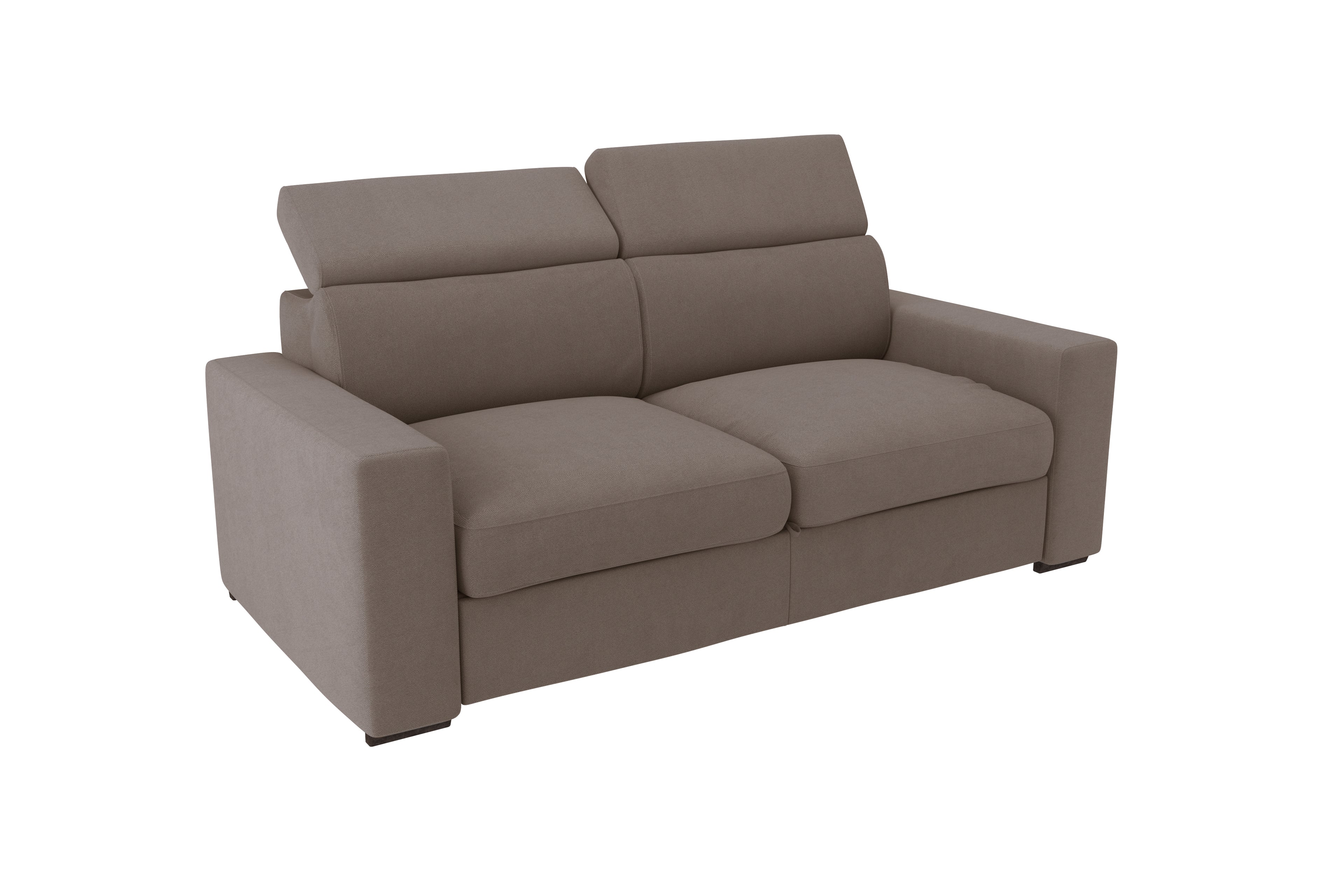 The Tirana 2-seater sofa with pull-out pouf offers maximum comfort thanks to the soft lumbar supports integrated into the structure, the reclining headrests and the seat, made of high quality polyurethane foam. The armrest with simple and squared lines allow it to be placed in any environment both classic and modern. Thanks to its small size, it can also be placed in rooms of small sizes.