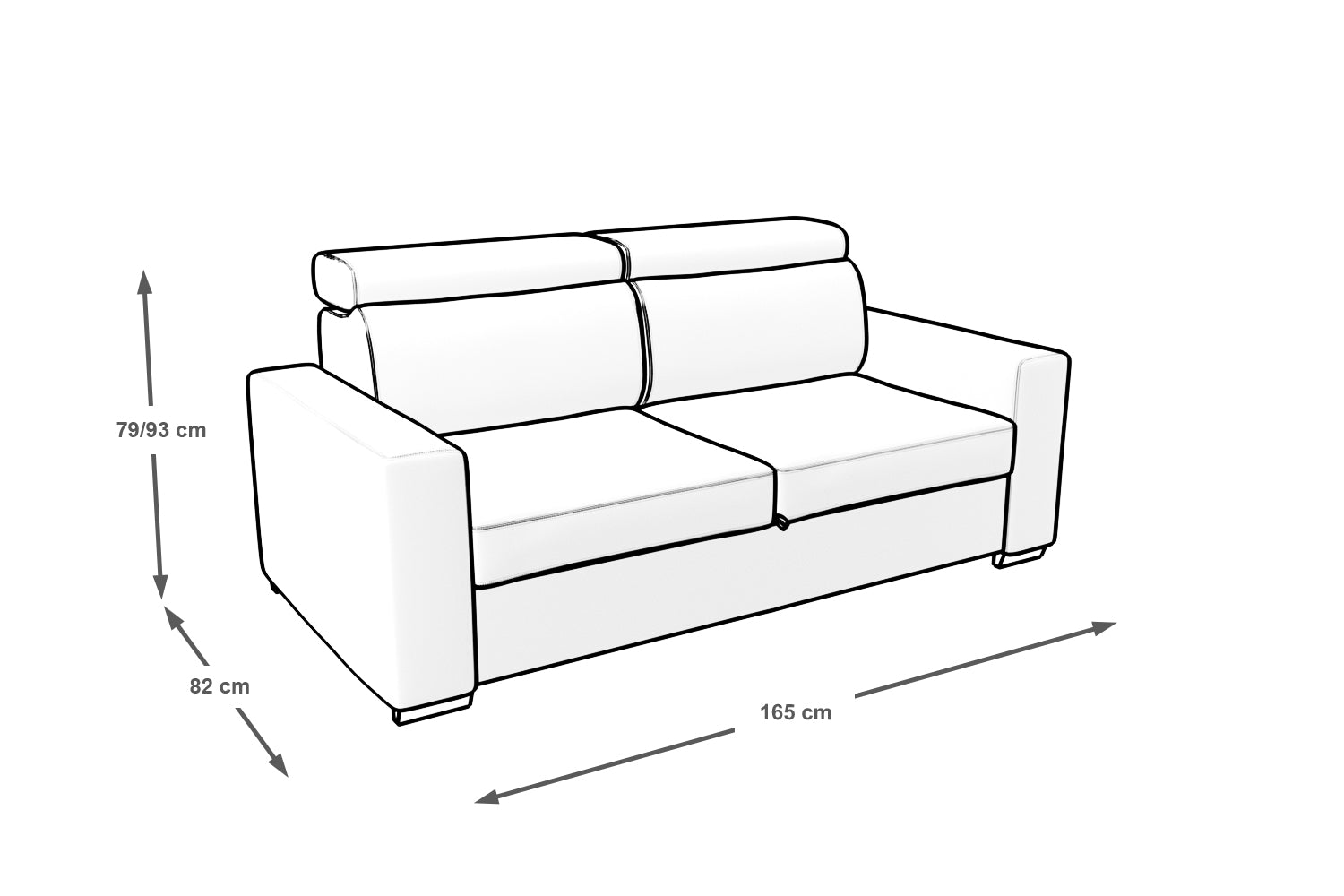 • Product description: this 2-seater sofa is suitable for small spaces due to its really compact size. It is equipped with a large pull-out pouf useful for stretching out the legs in moments of relaxation. Its maximum overall dimensions are 165x82cm and the seats are 54cm deep. total relaxation area 132x151cm. It is equipped with comfortable headrests that can be adjusted to various positions up to vertical