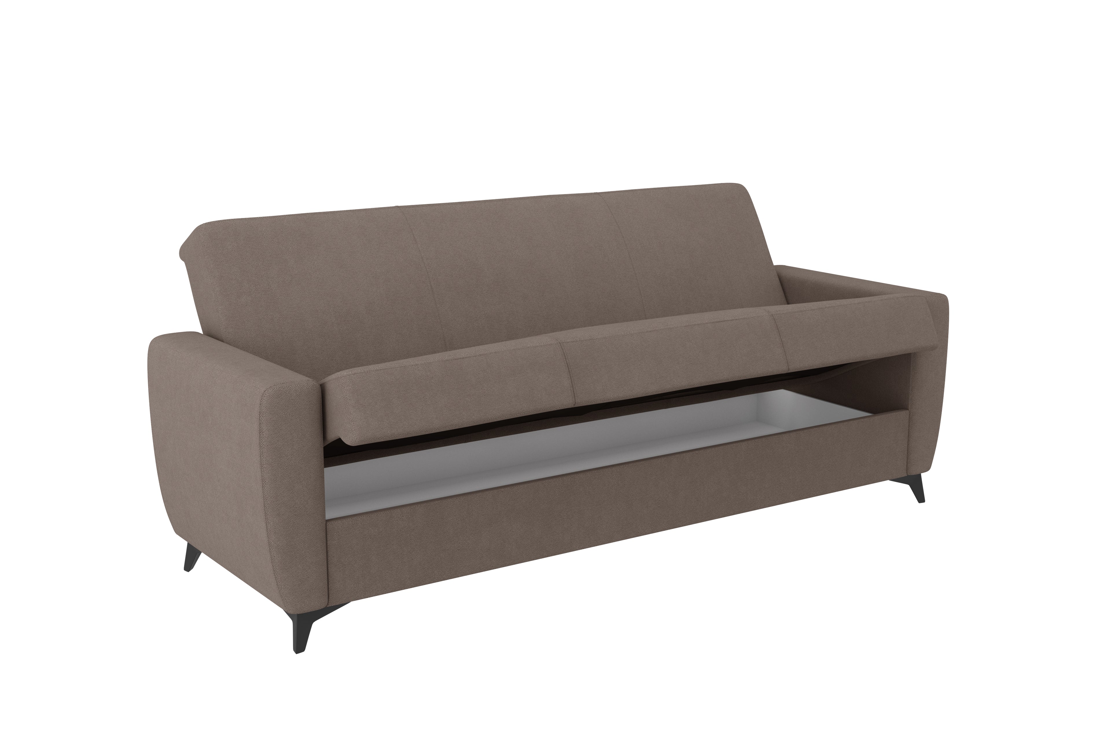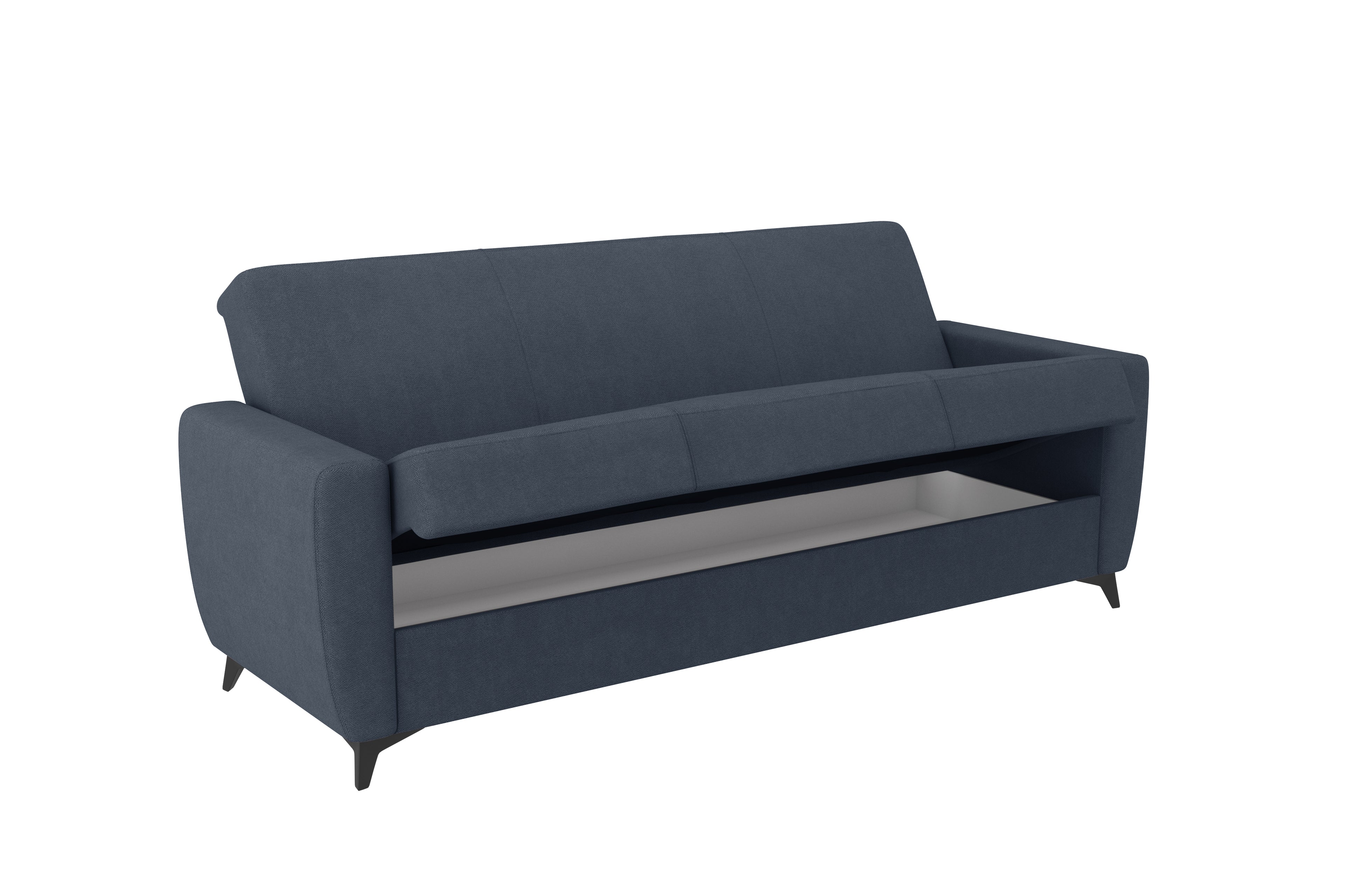 - Descrizione prodotto: questo divano letto a 3 posti con apertura a libro è adatto a qualsiasi ambiente. È dotato di un ampio contenitore sotto la seduta, dove riporre cuscini, giocattoli, coperte e quant'altro. Inoltre, diventa un letto con un semplice movimento e sollevando la seduta e poi spingendo nuovamente verso il basso si richiude rapidamente. Le sue dimensioni massime d'ingombro sono 224x88cm mentre le sedute sono profonde 55cm.
