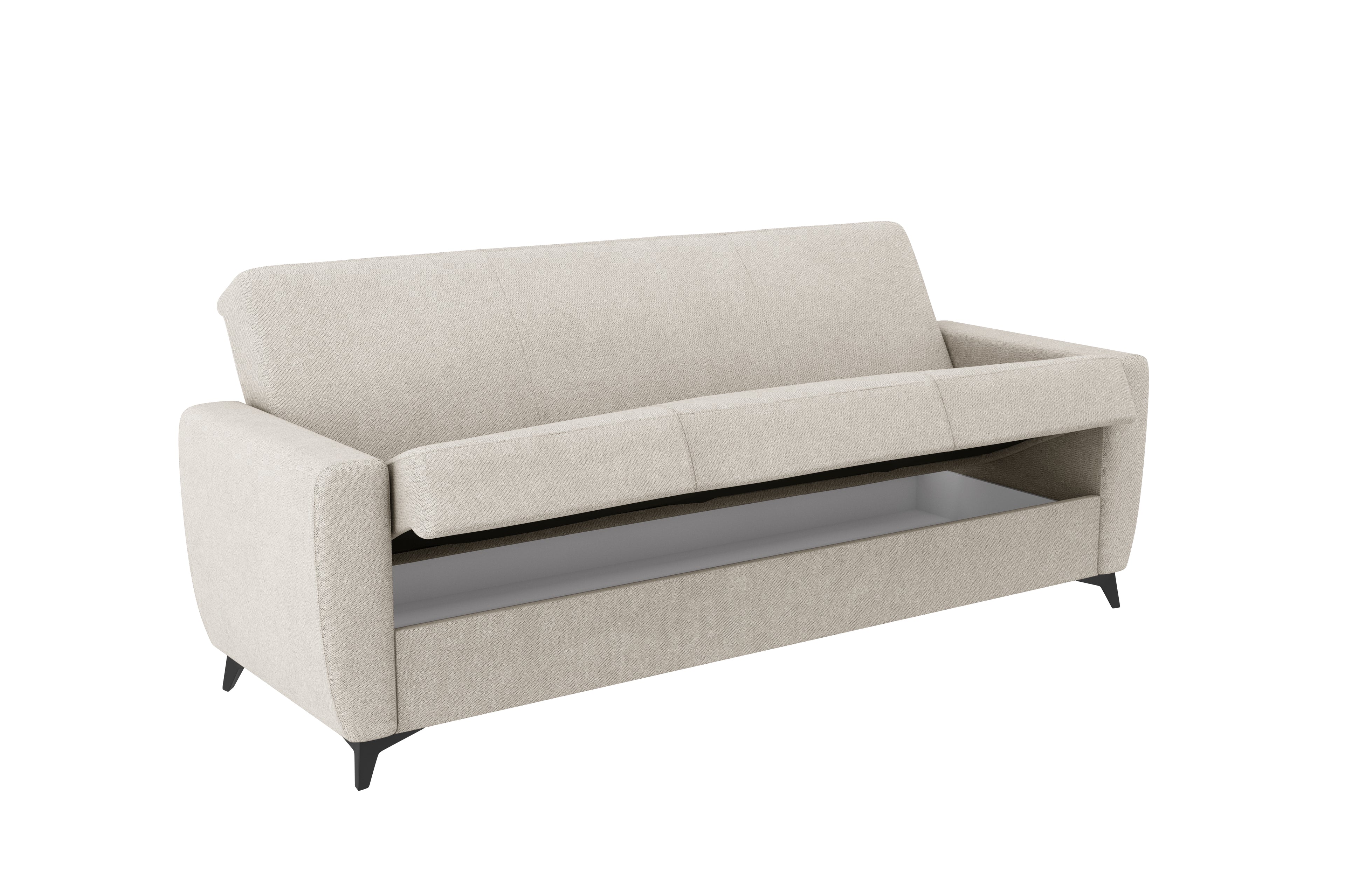 Un divano 3 posti letto con apertura a libro e meccanismo clic clac. Elegante e funzionale, il divano NAXOS è un’ottima soluzione per un posto letto supplementare da utilizzarsi occasionalmente. Il divano è prodotto con tessuto di alta qualità resistente all’abrasione. Interamente prodotto in UE.