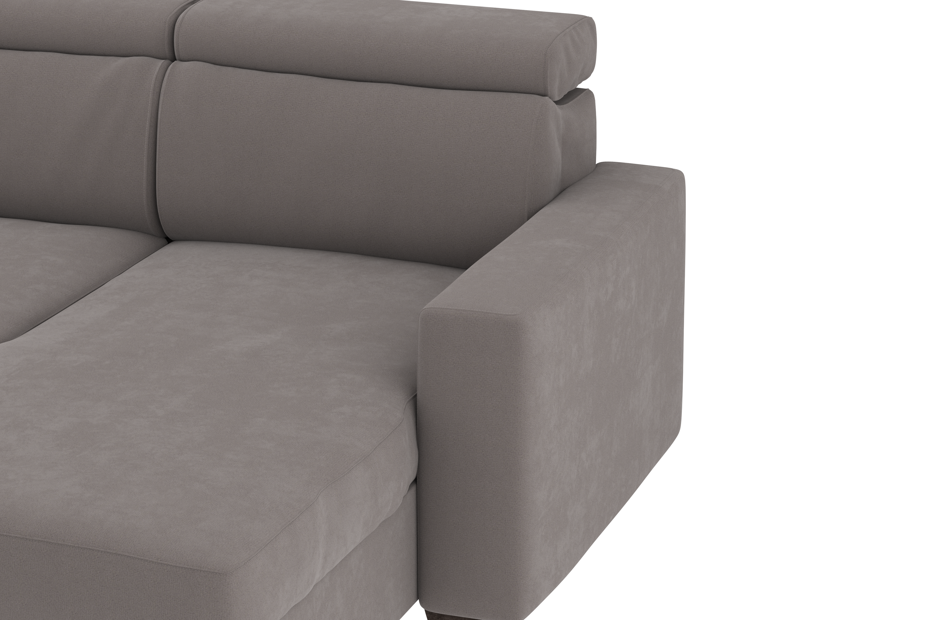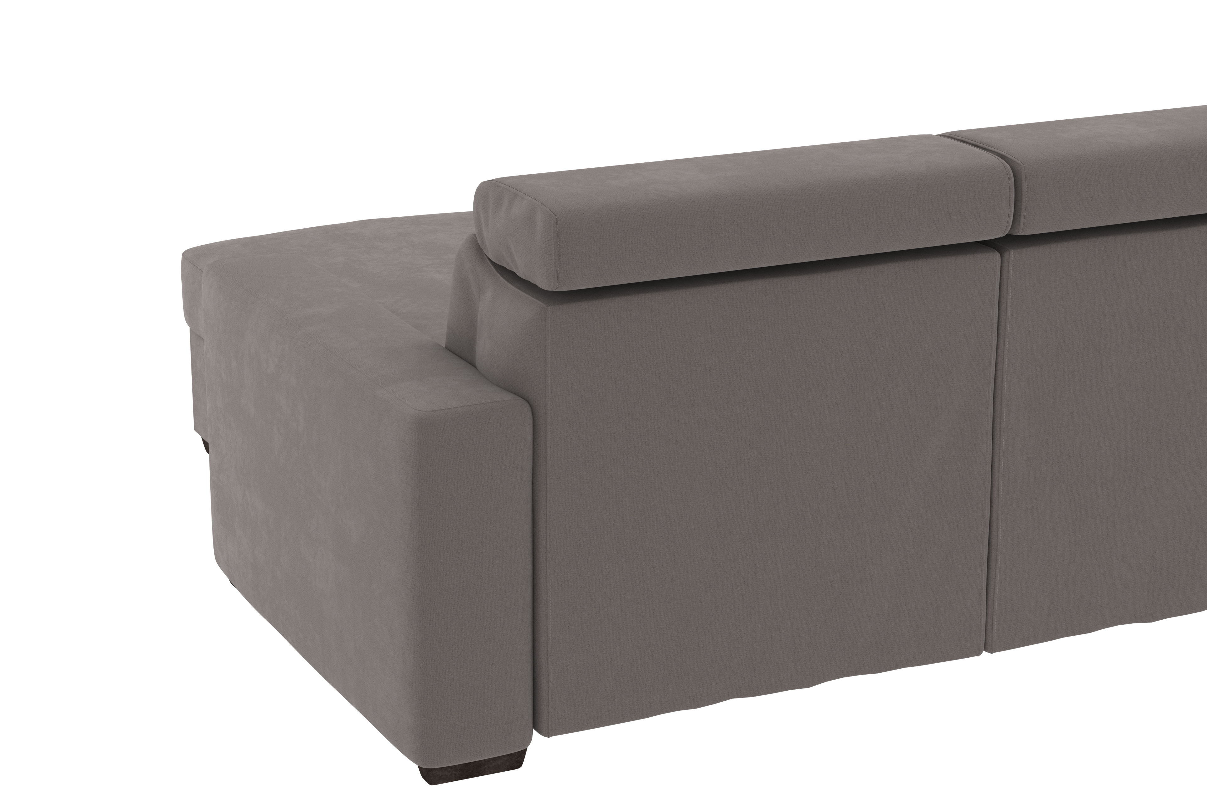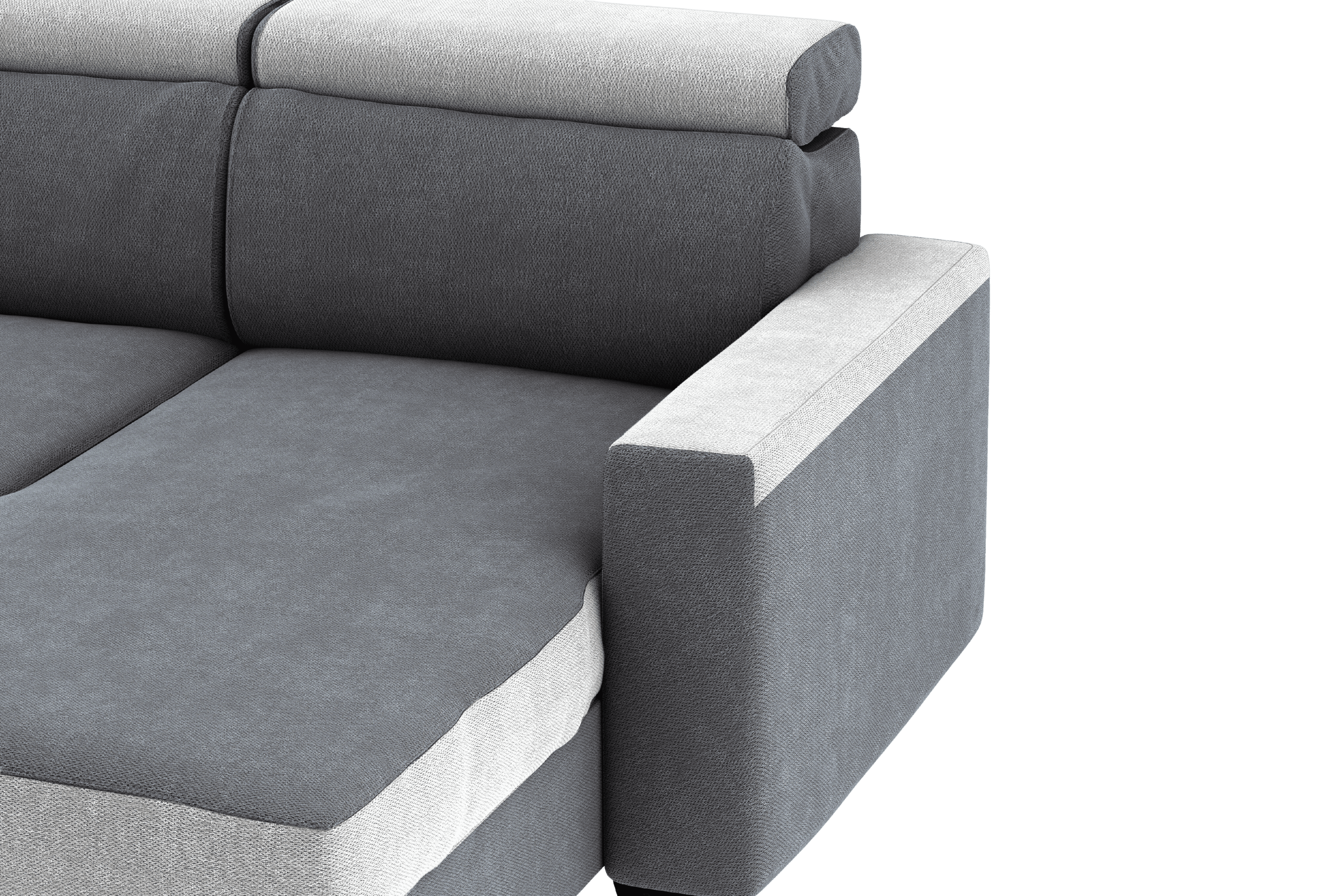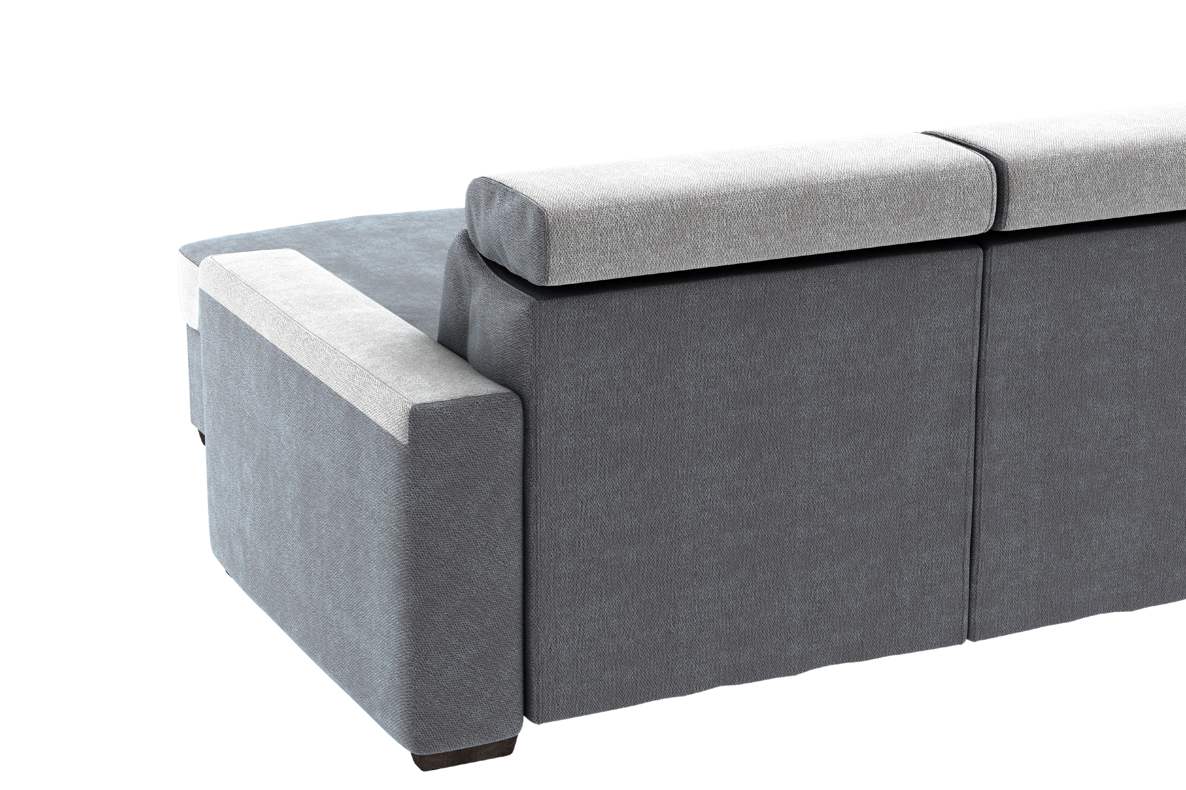 Un divano 2 posti con chaise longue dallo stile moderno, con un meccanismo inferiore scorrevole che consente di estrarre un ripiano che allineandosi alla seduta crea un comodo letto o un semplice supporto poggiapiedi. La chaise longue è un capiente contenitore dove riporre cuscini e quant’altro. Il divano è prodotto con tessuto di alta qualità resistente all’abrasione. Interamente prodotto in UE.