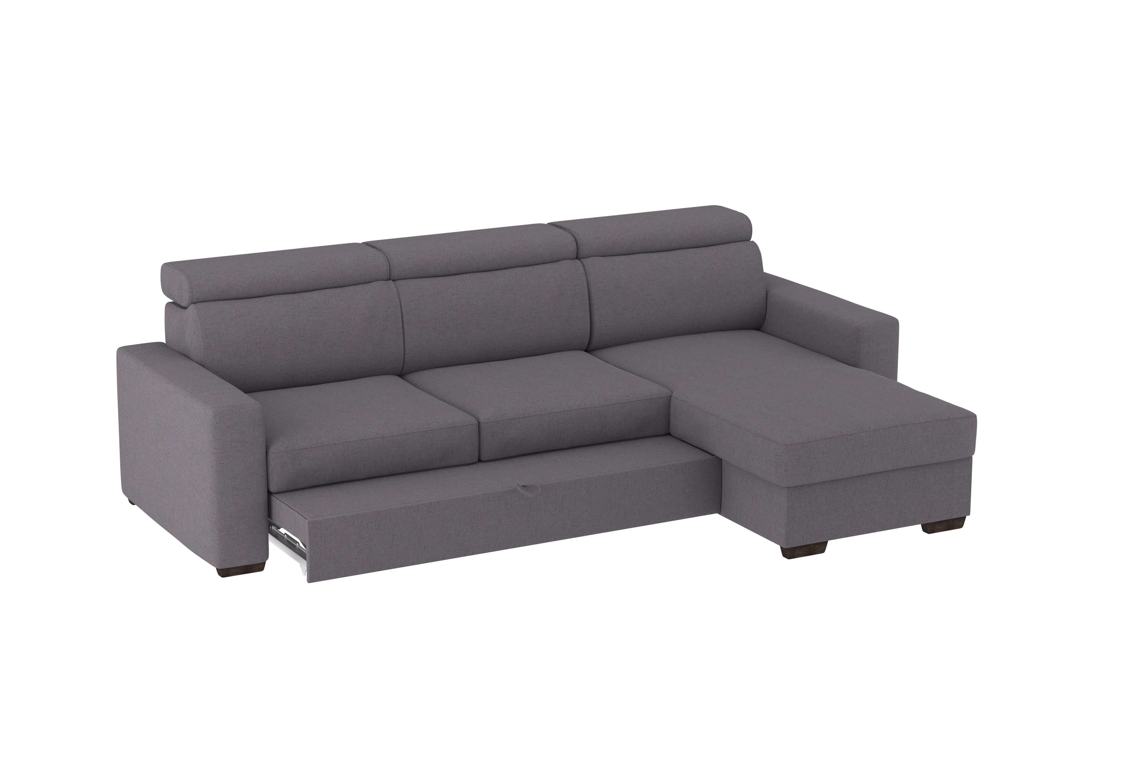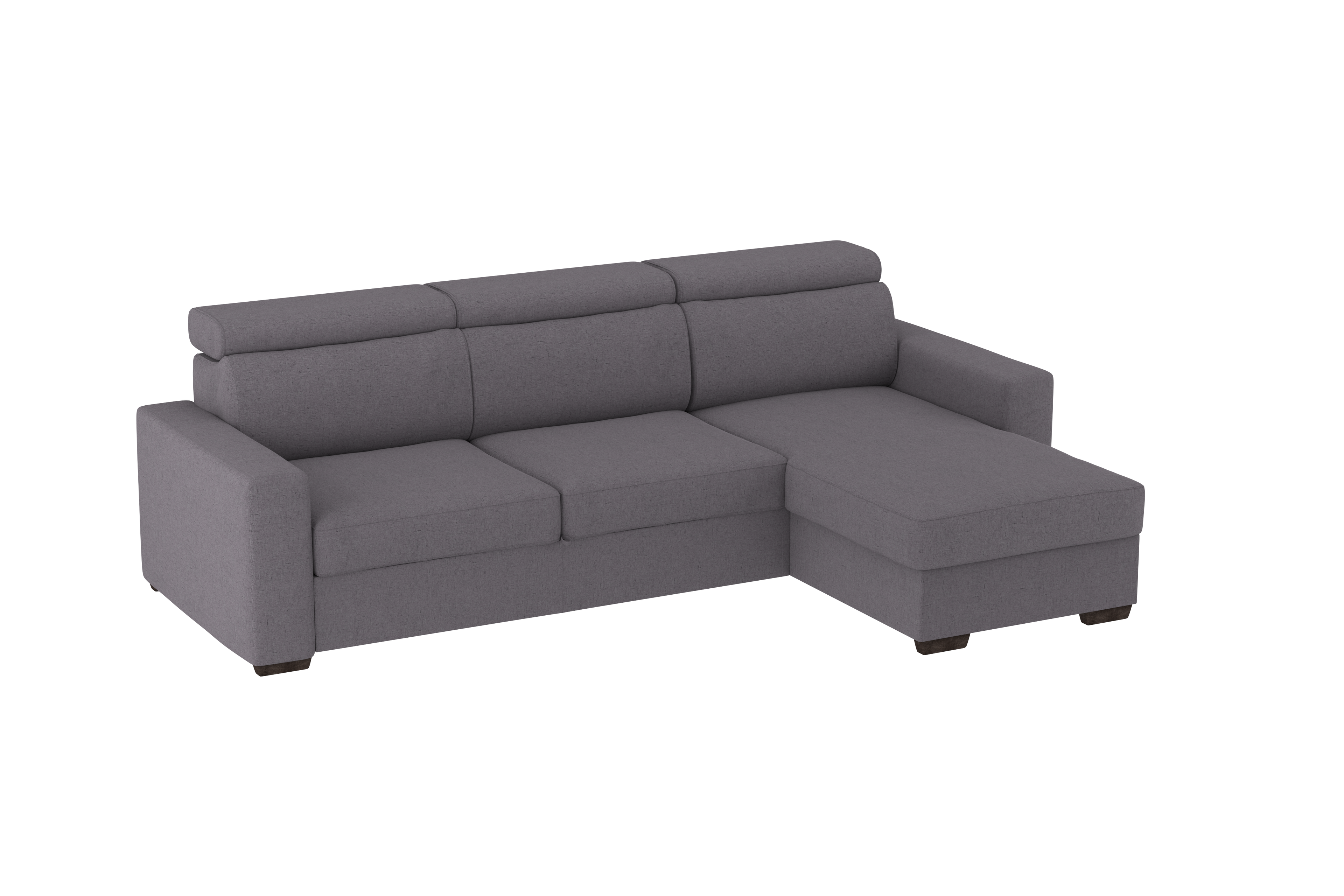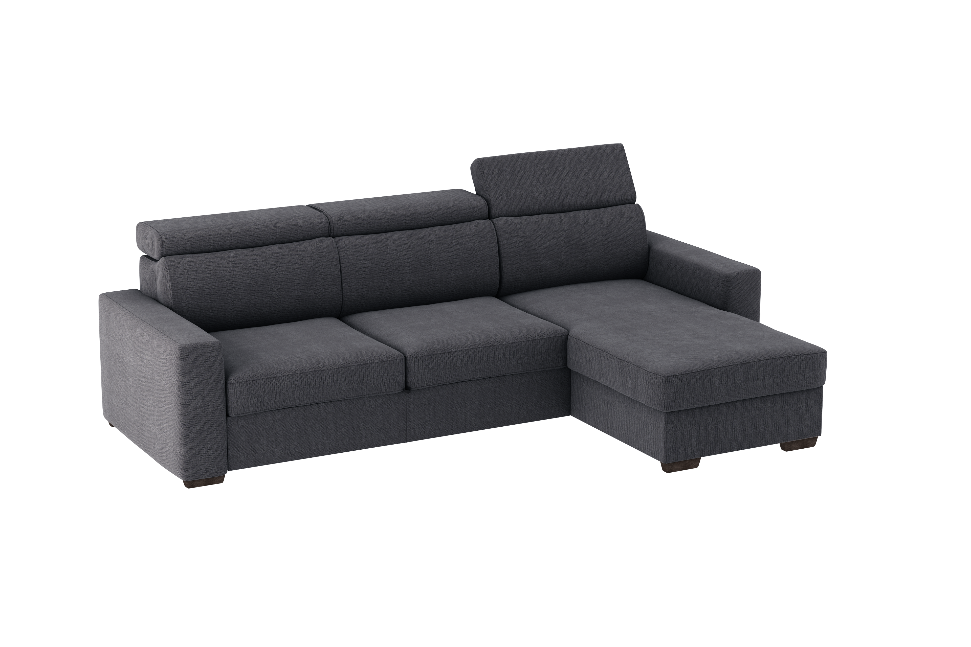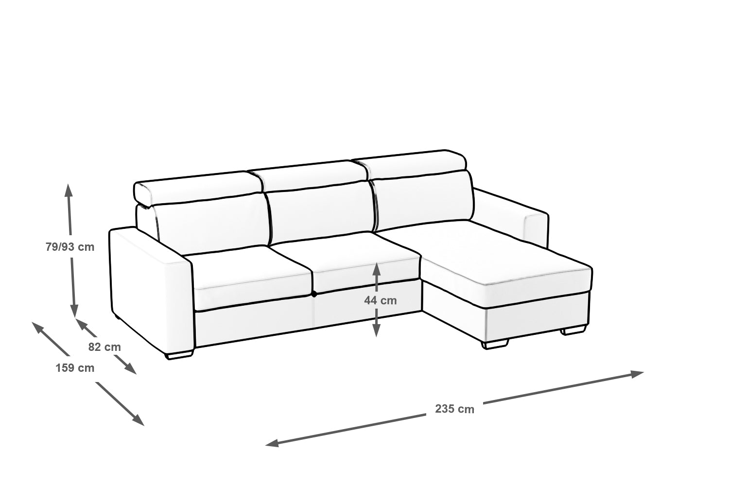 - Descrizione prodotto: questo divano è reversibile il che significa che la chaise longue puo’ essere posizionata sia a destra che a sinistra del divano. È perfetto per gli ambienti di media grandezza ma non ha nulla da invidiare a quelli di dimensioni piu’ generose. È dotato di materasso ad estrazione complanare adatto per riposare le gambe durante i vostri momenti di relax, oppure a trasformarsi insieme alle sedute ed alla chaise longue in un letto rapido per ospiti dell'ultimo minuto. È dotato di una comoda chaise longue munita di un ampio contenitore interno utile a riporre cuscini, coperte, giocattoli e quant'altro. le sue dimensioni massime d'ingombro sono 235x151cm e le sedute sono profonde ben 54cm. area letto 198x123 cm. È dotato di comodi poggiatesta regolabili in diverse posizioni fino a quella verticale.