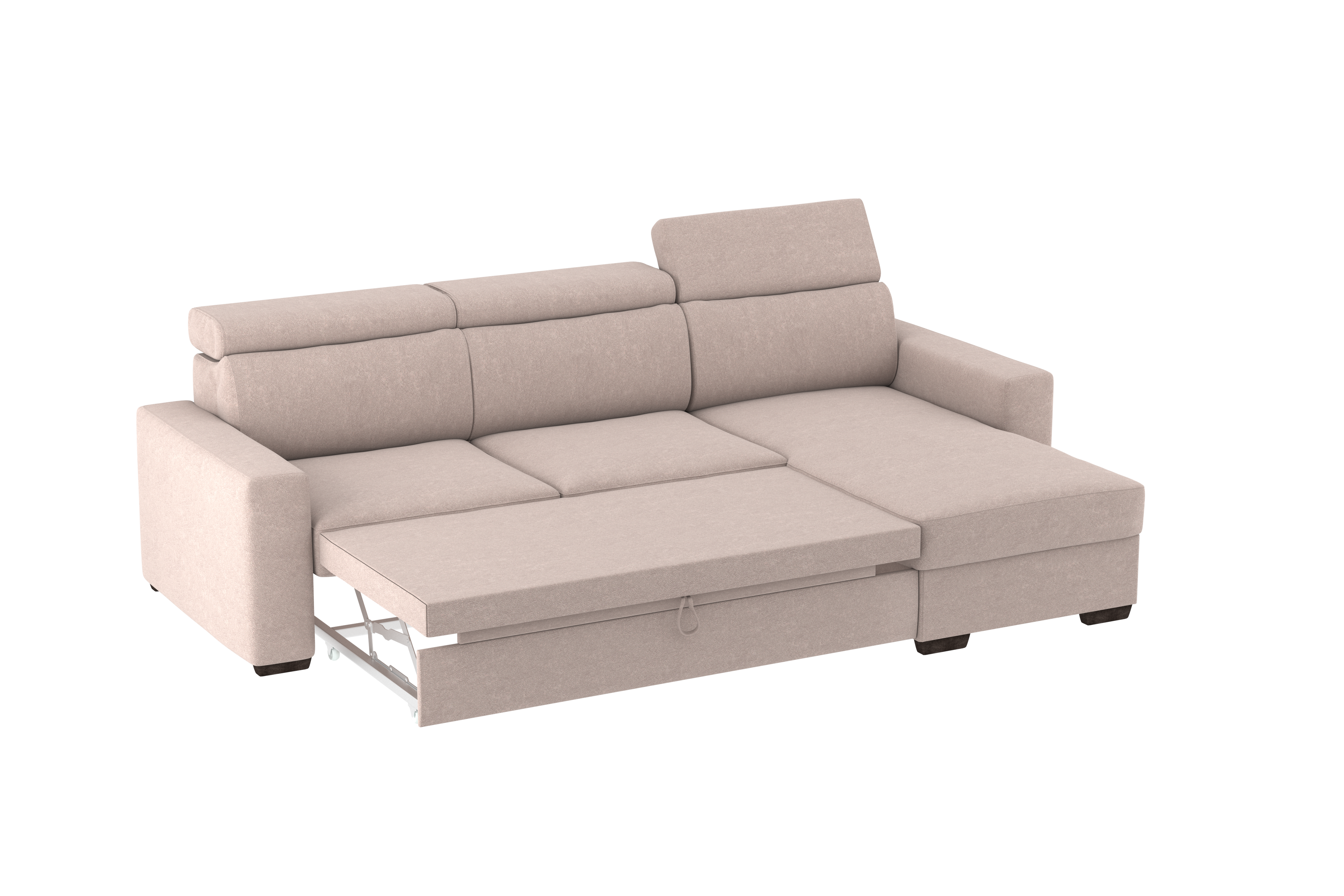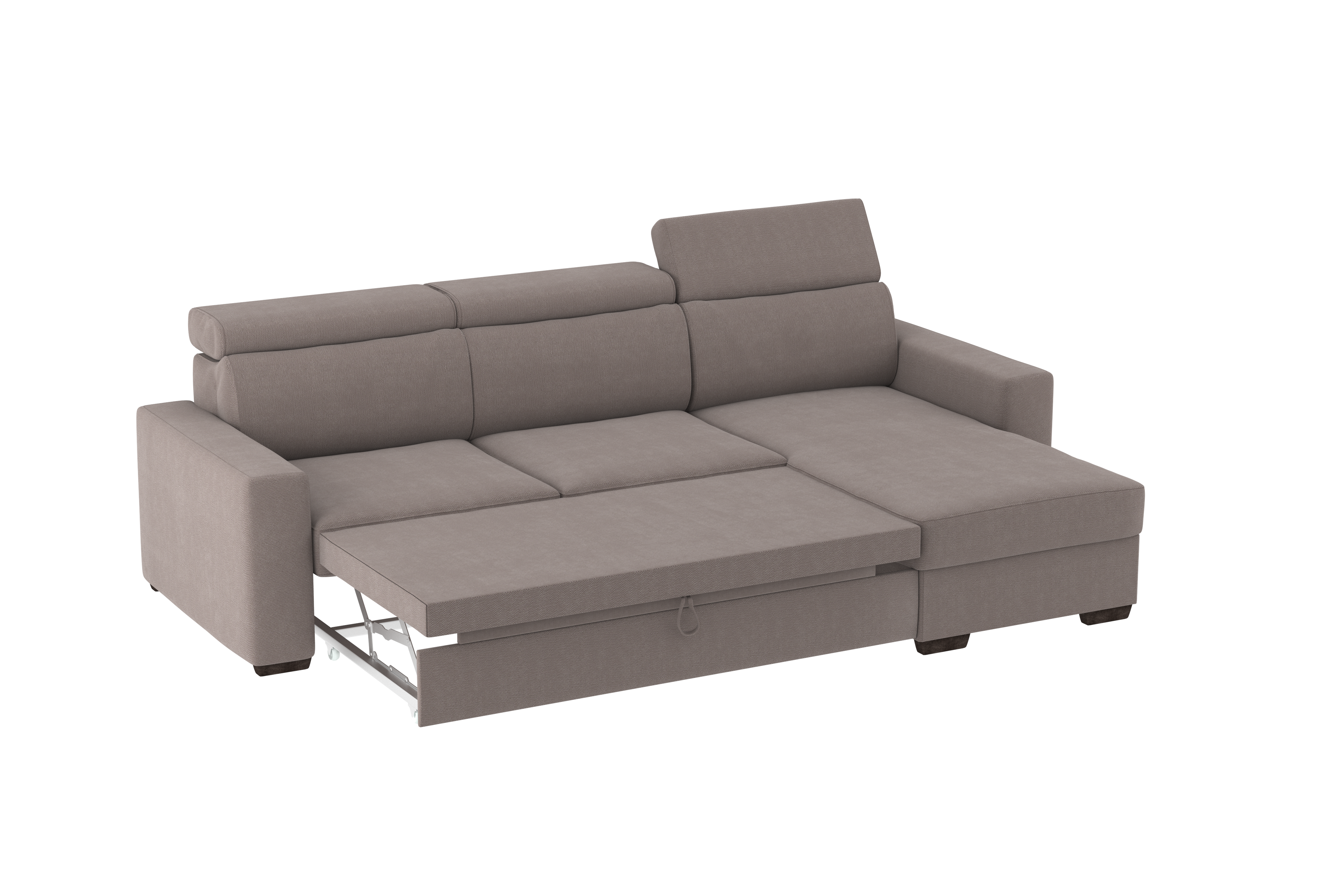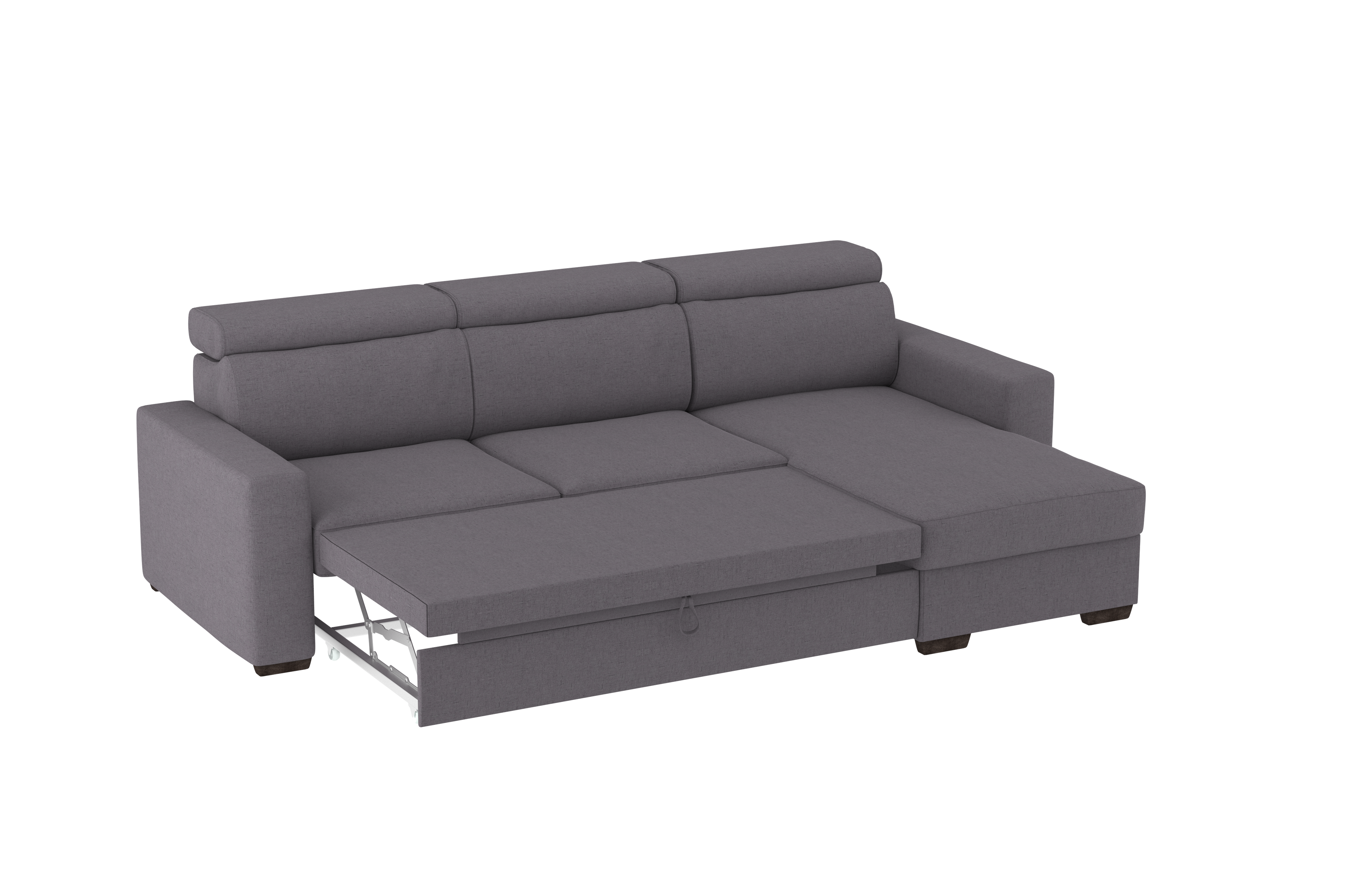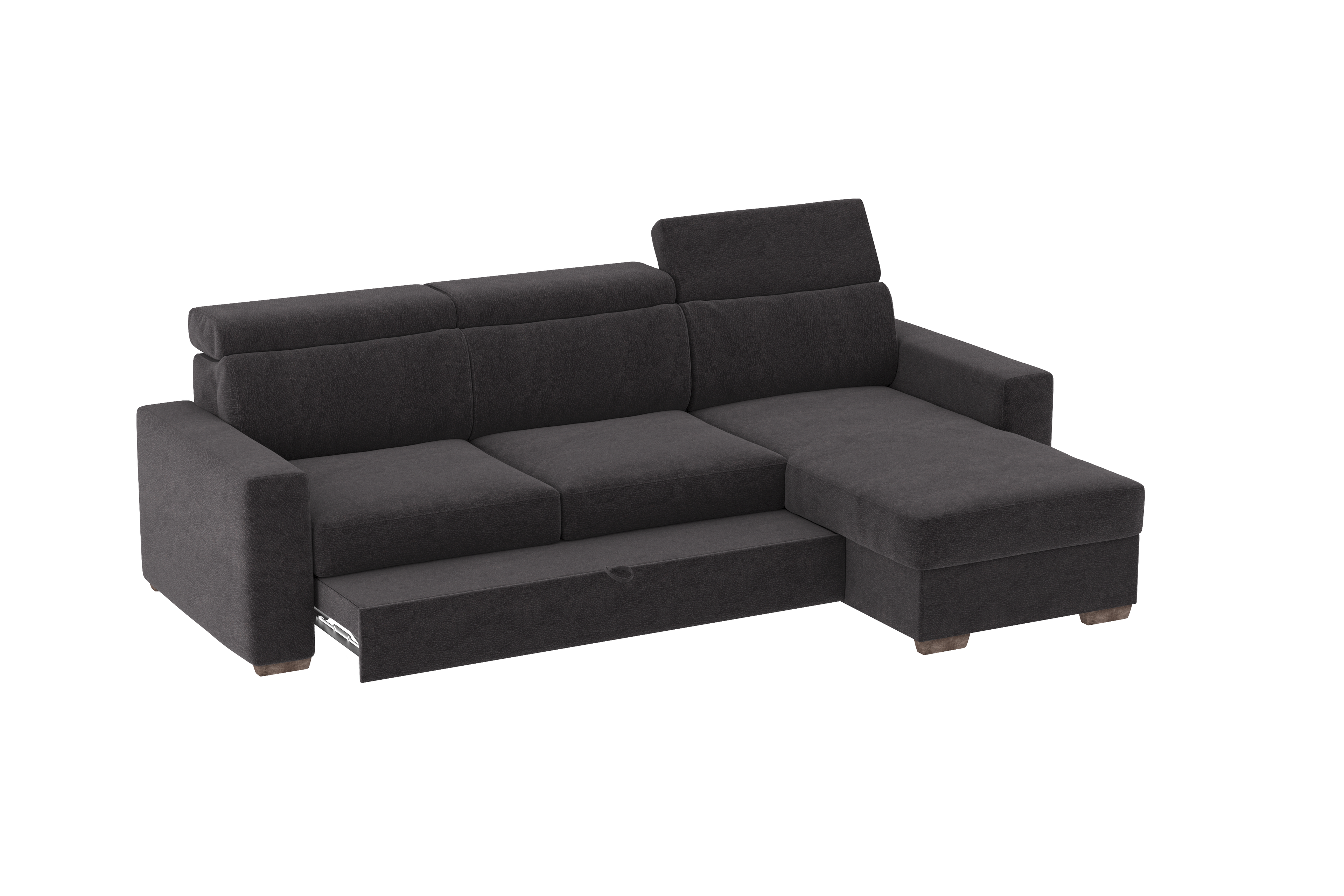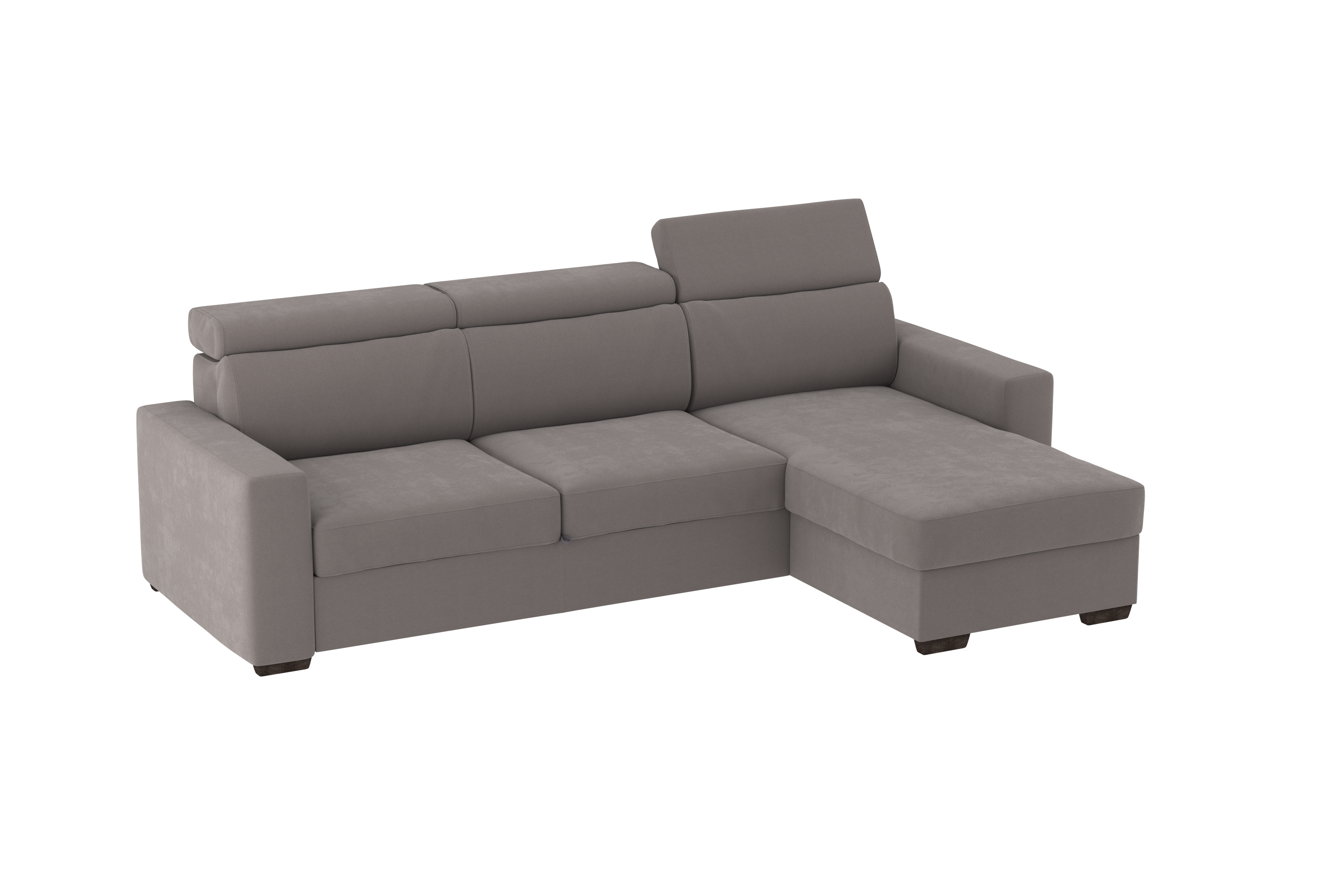 - Descrizione prodotto: questo divano è reversibile il che significa che la chaise longue puo’ essere posizionata sia a destra che a sinistra del divano. È perfetto per gli ambienti di media grandezza ma non ha nulla da invidiare a quelli di dimensioni piu’ generose. È dotato di materasso ad estrazione complanare adatto per riposare le gambe durante i vostri momenti di relax, oppure a trasformarsi insieme alle sedute ed alla chaise longue in un letto rapido per ospiti dell'ultimo minuto. È dotato di una comoda chaise longue munita di un ampio contenitore interno utile a riporre cuscini, coperte, giocattoli e quant'altro. le sue dimensioni massime d'ingombro sono 235x151cm e le sedute sono profonde ben 54cm. area letto 198x123 cm. È dotato di comodi poggiatesta regolabili in diverse posizioni fino a quella verticale.